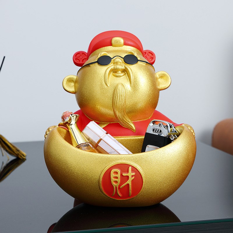 财神爷招财纳福摆件创意入户钥匙收纳摆件好寓意店铺前台桌面装饰