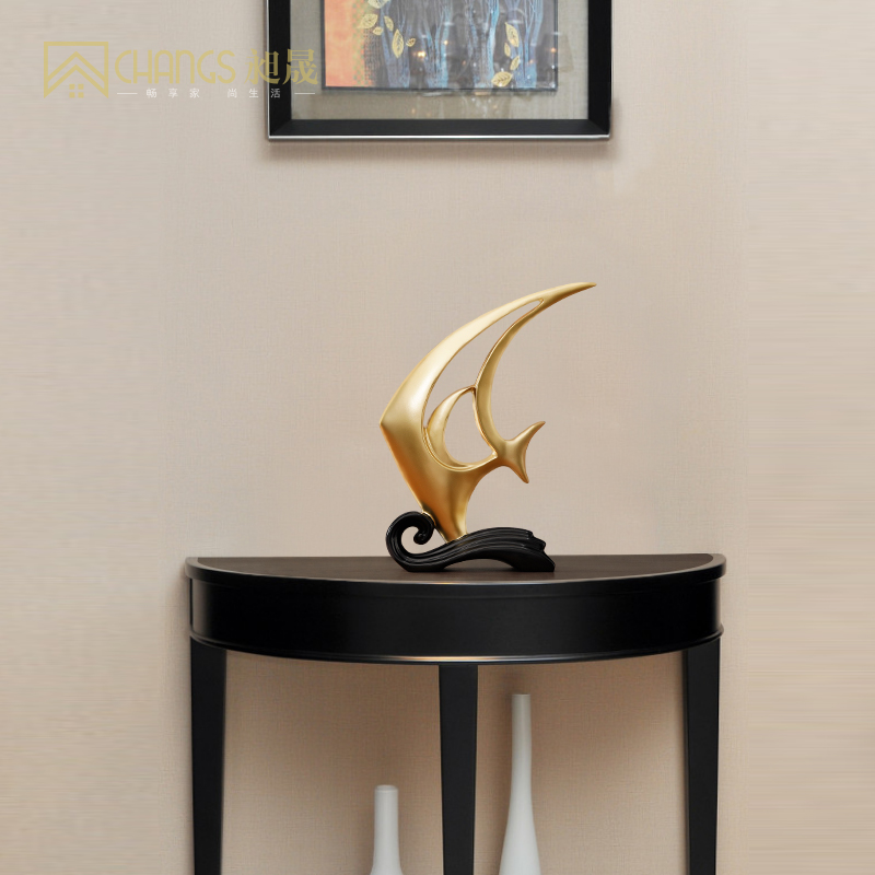 金色海豚工艺品酒柜摆件办公室桌面轻奢装饰品朋友电视柜客厅摆设