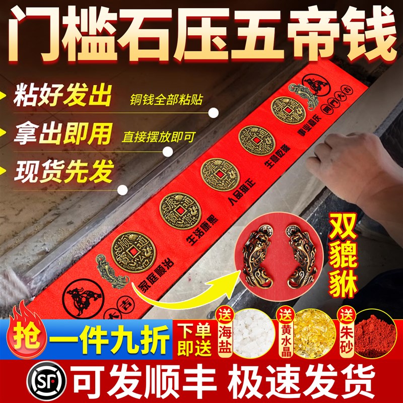 五帝钱压门槛石入户门下压出入平安纯过门石专用加厚真品铜币物品