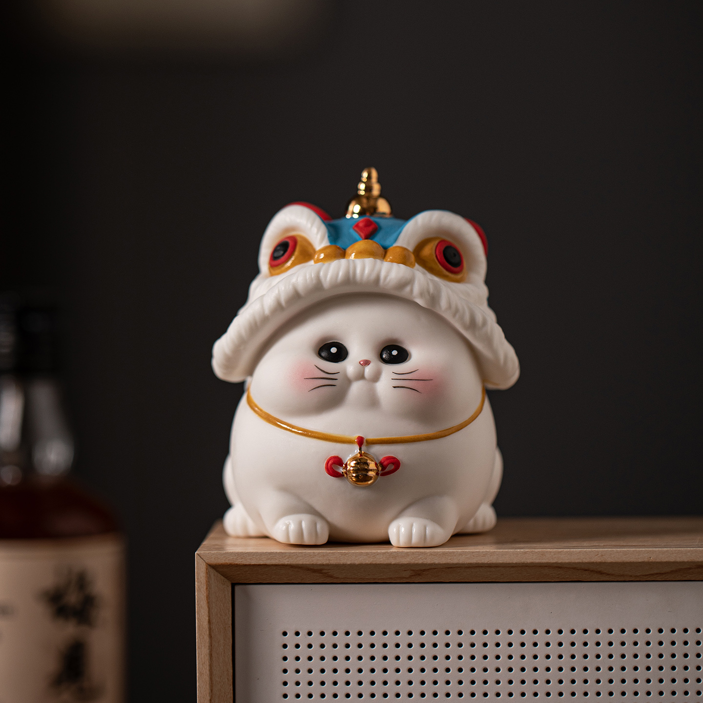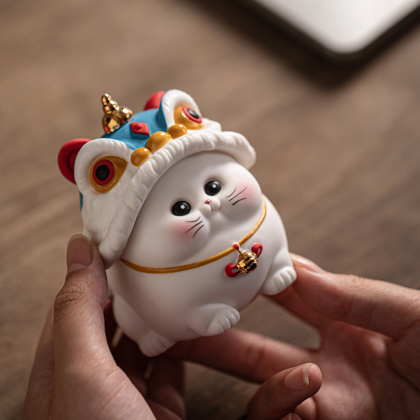 国潮醒狮招财猫小摆件客厅办公桌面装饰工艺品汽车载陶瓷可爱猫咪