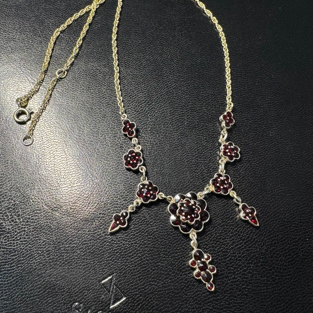 宫廷流苏石榴石通体925银古董设计锁骨银项链中世纪欧洲波西米亚