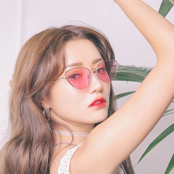 复古猫眼姜黄框女太阳镜 小脸2021ins同款欧美墨镜女度假眼镜红色