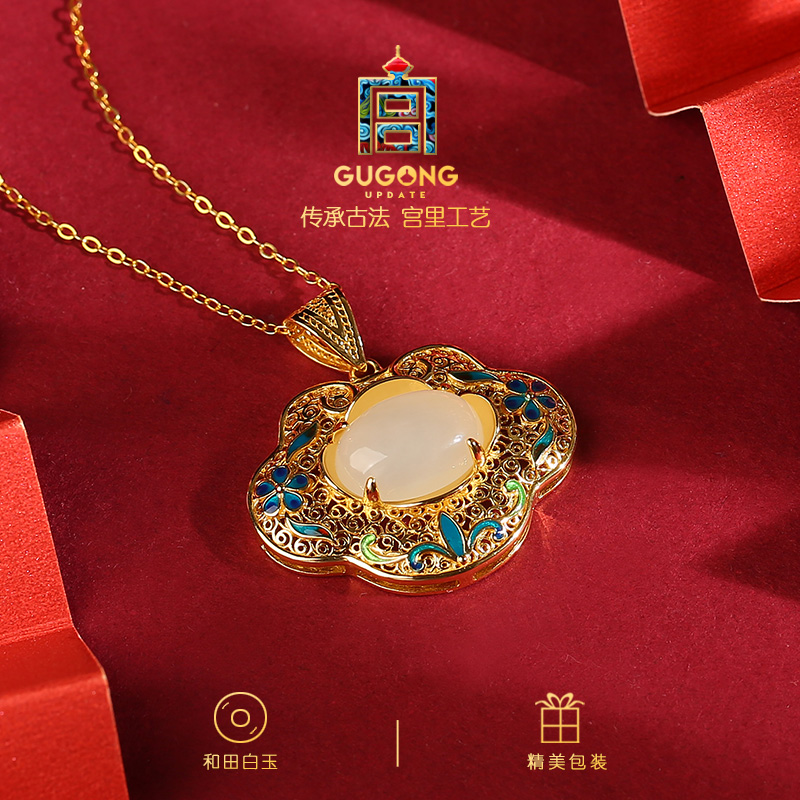宫里上新平安锁项链女银锁长命锁和田玉吊坠新中式生日礼物送妈妈