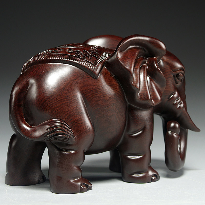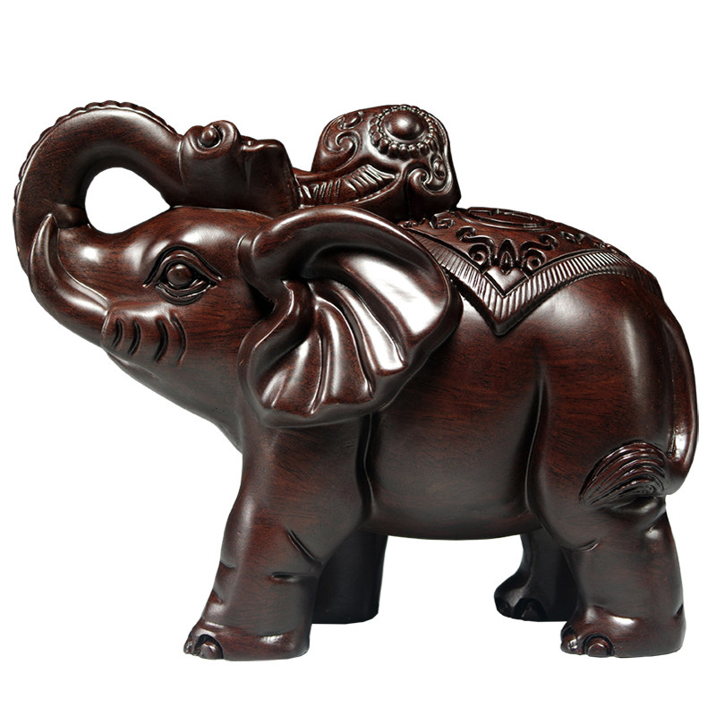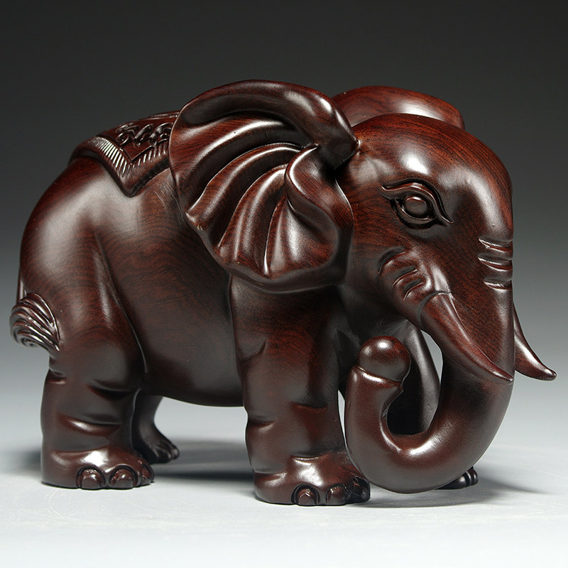 黑檀木雕大象摆件一对实木家居客厅电视柜装饰红木工艺品开业送礼