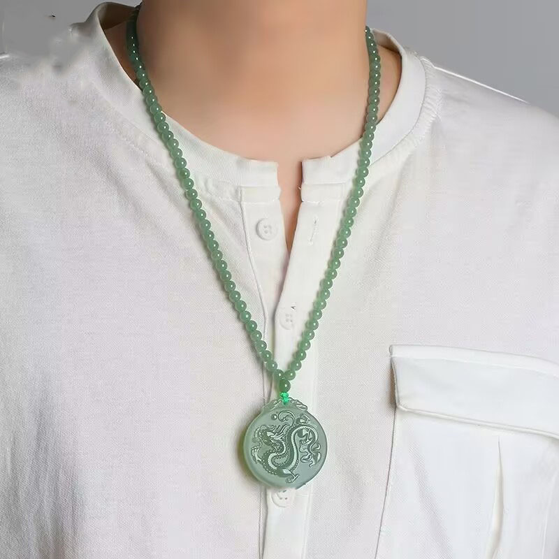 和田色玉佛公吊坠弥勒佛笑佛挂件男女款玉石圆珠项链时尚百搭