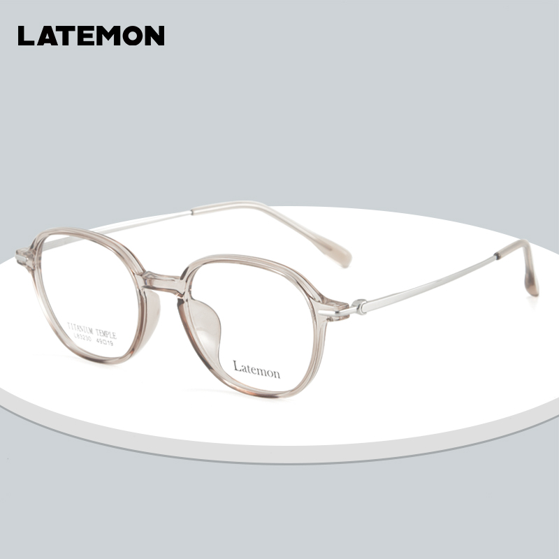 浪特梦眼镜女温柔透茶色椭圆框近视眼镜架钛镜腿光学镜L83230