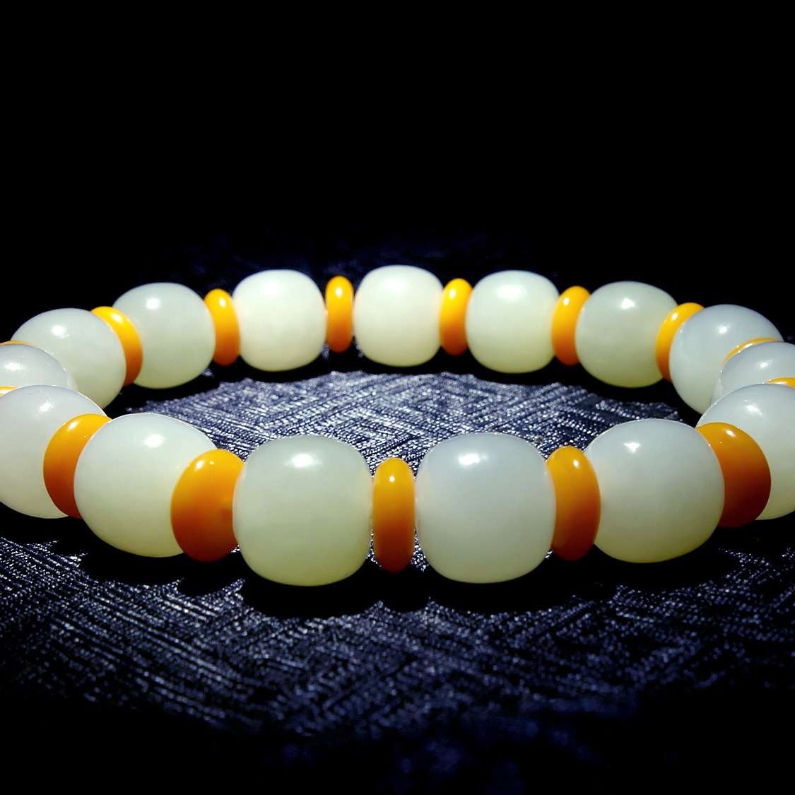 新疆和田玉手链男女款和田玉白玉老型珠桶珠手串一件