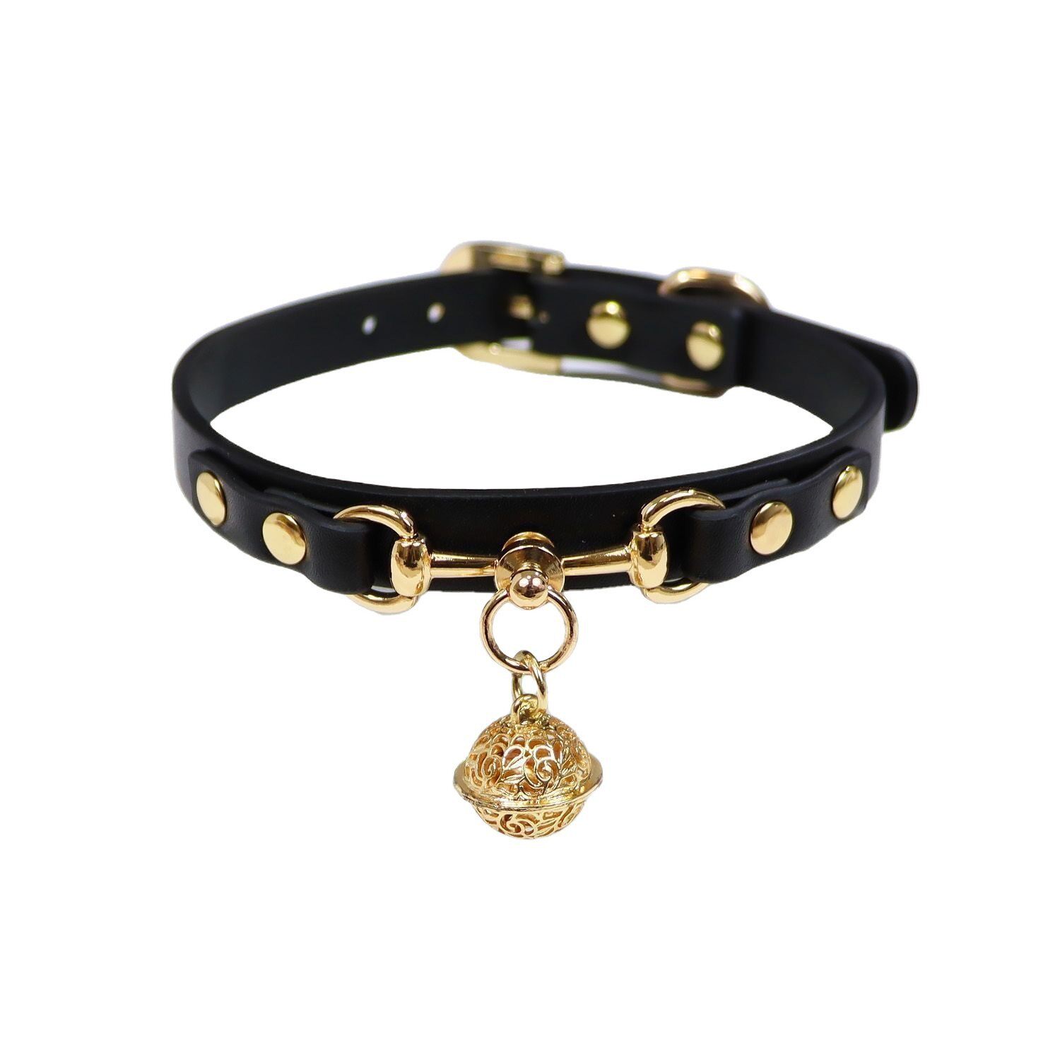 宫铃皮革项圈女m定制刻字puppy牵引高级黑色铃铛choker锁骨项链