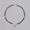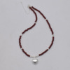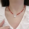 复古拉丝银爱心坠项链女2025新款红色珍珠串珠拼接锁骨链高级感潮