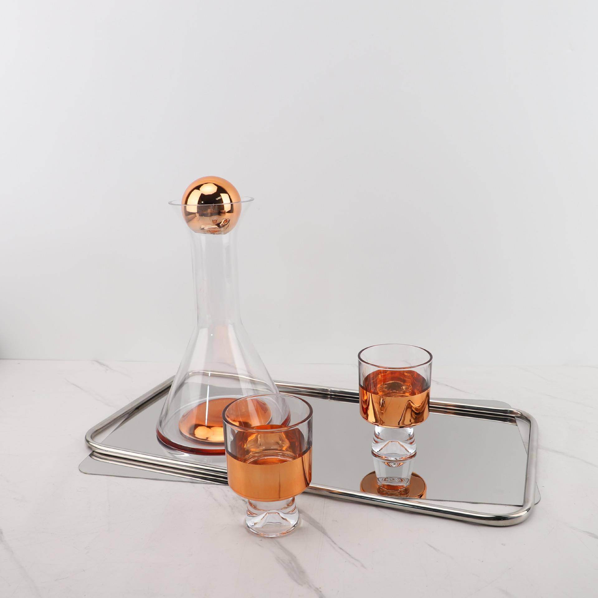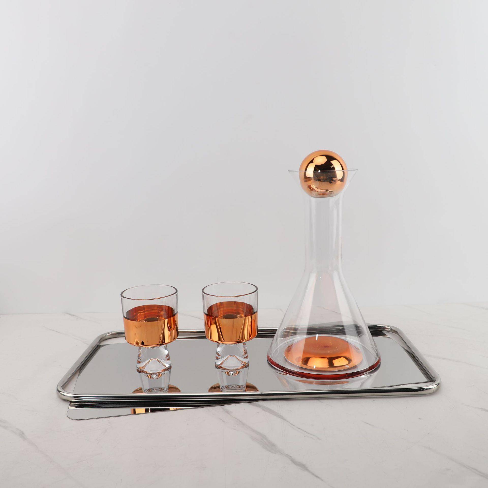欧式创意关纳简约镜面收托盘玻0443璃酒具办公室饰书房卧室玄家居