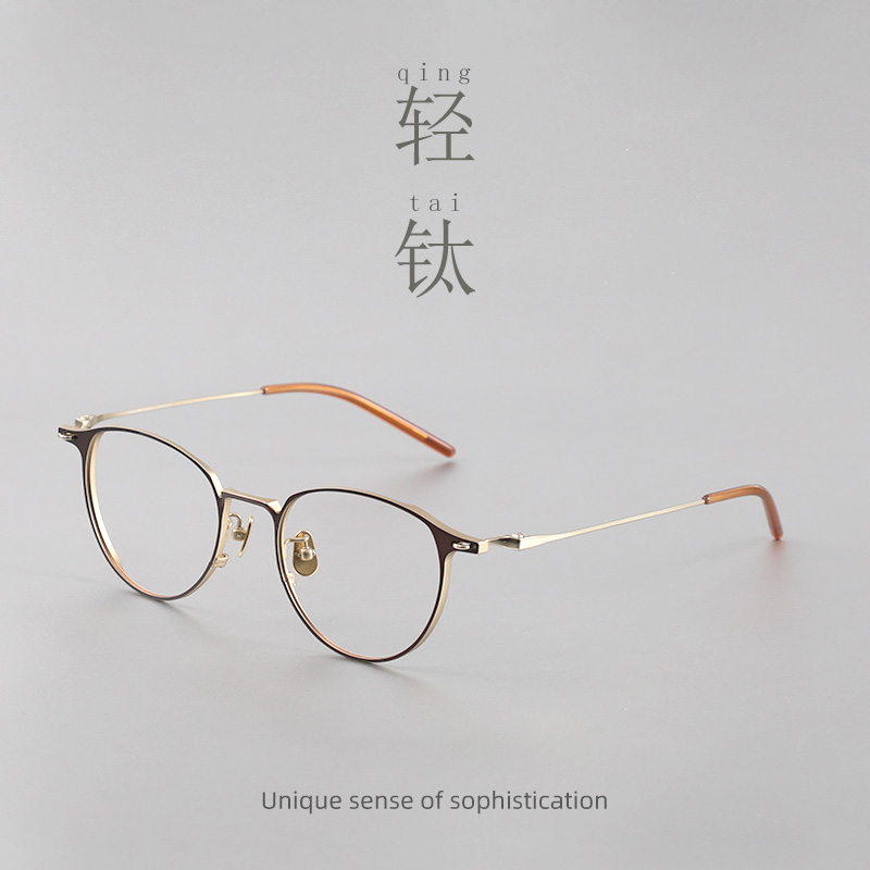 韩国超轻纯钛近视眼镜框女可配高度数素颜眼睛复古圆脸显瘦眼镜架