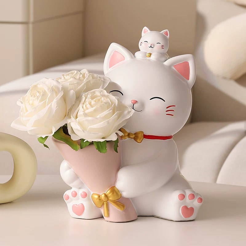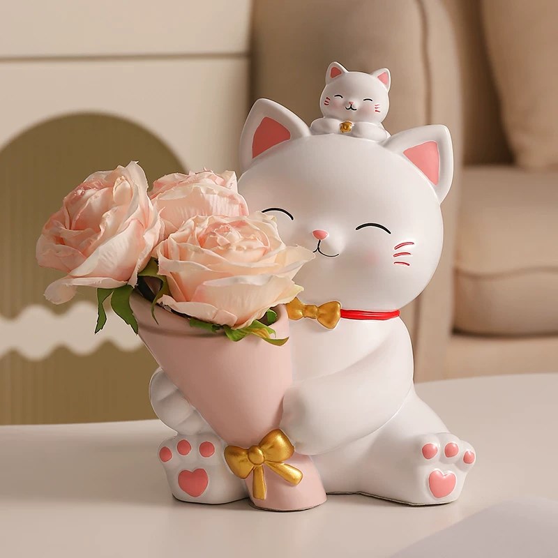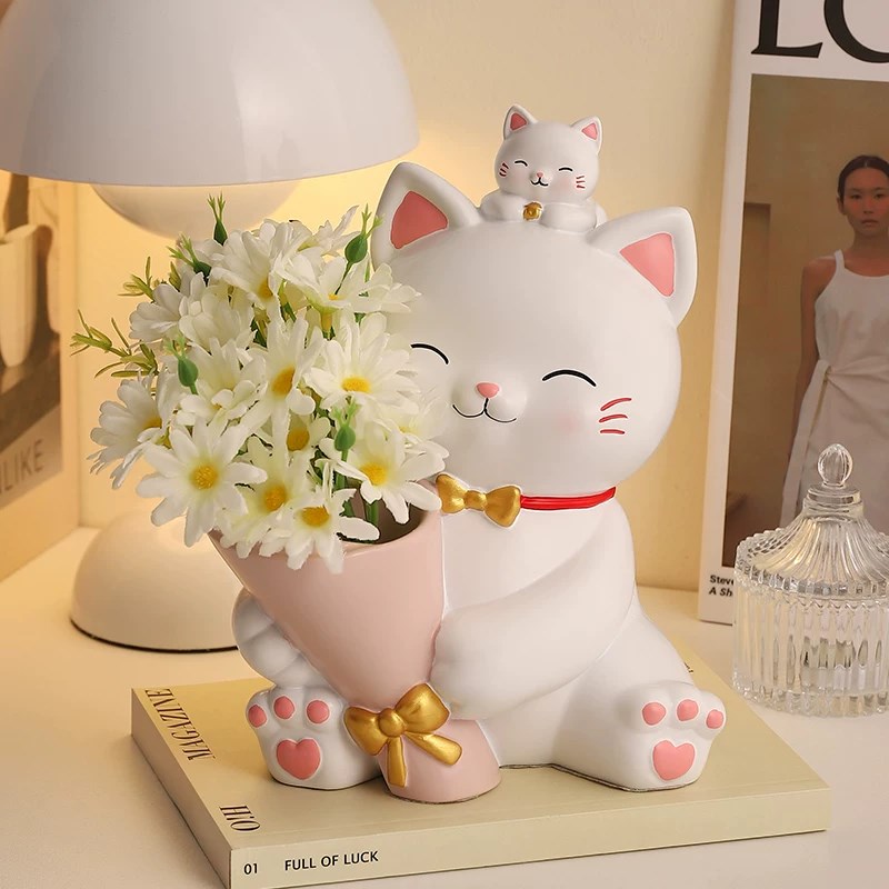 可爱捧花招财猫摆件客厅轻奢高档电视柜桌面装饰品生日礼物送女生