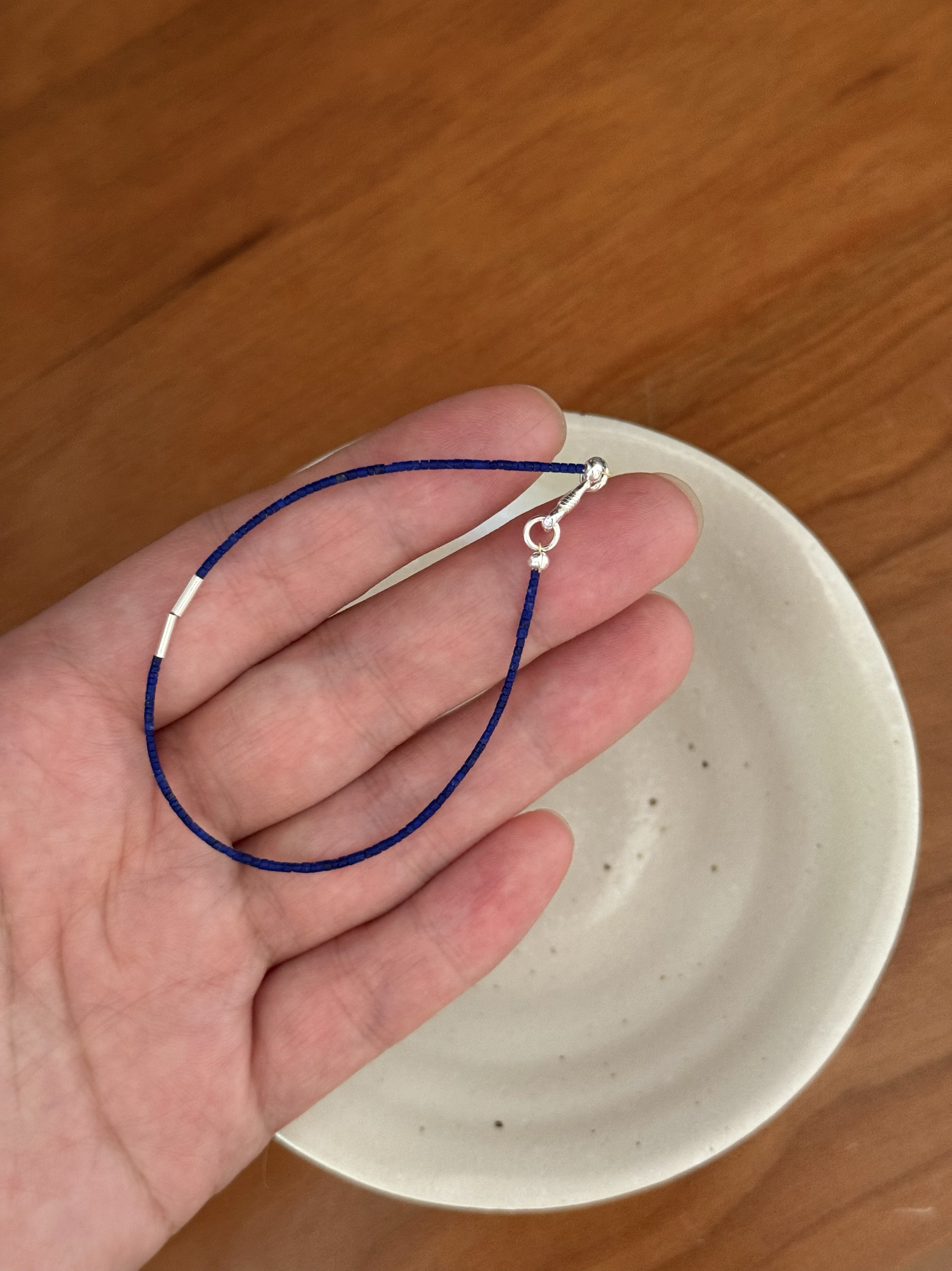 超细天然青金石手链泰银S925银碎银子简约百搭叠带小众蓝色礼物