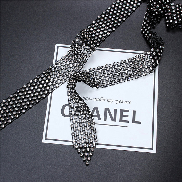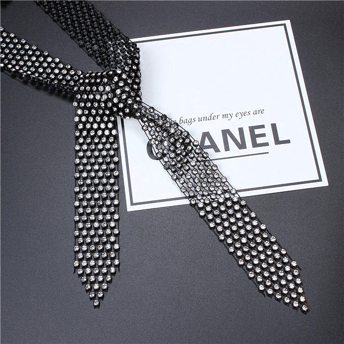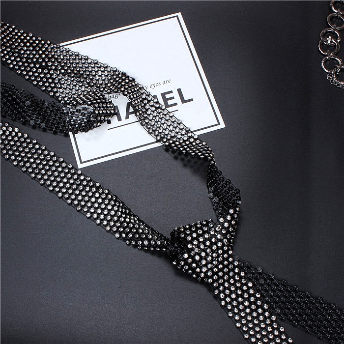 春夏新品闪亮多排水钻长脖链欧美时尚个性颈链黑色复古项链毛衣链