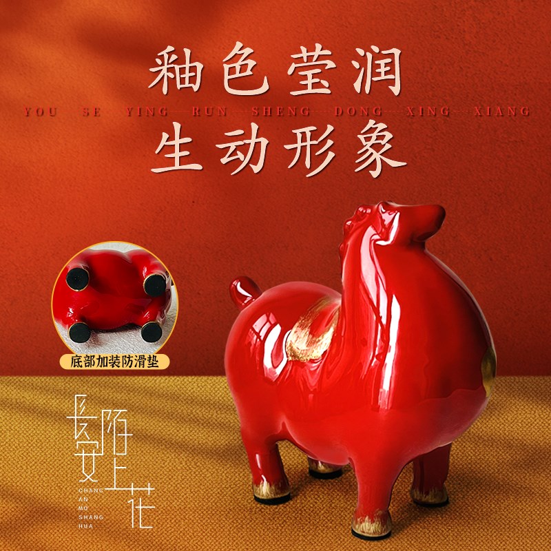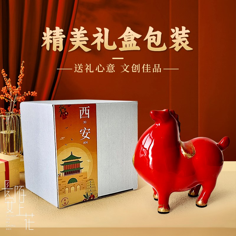 陶瓷唐五花小胖马红色马陶瓷工艺品客厅家居小饰品送礼小唐马摆件