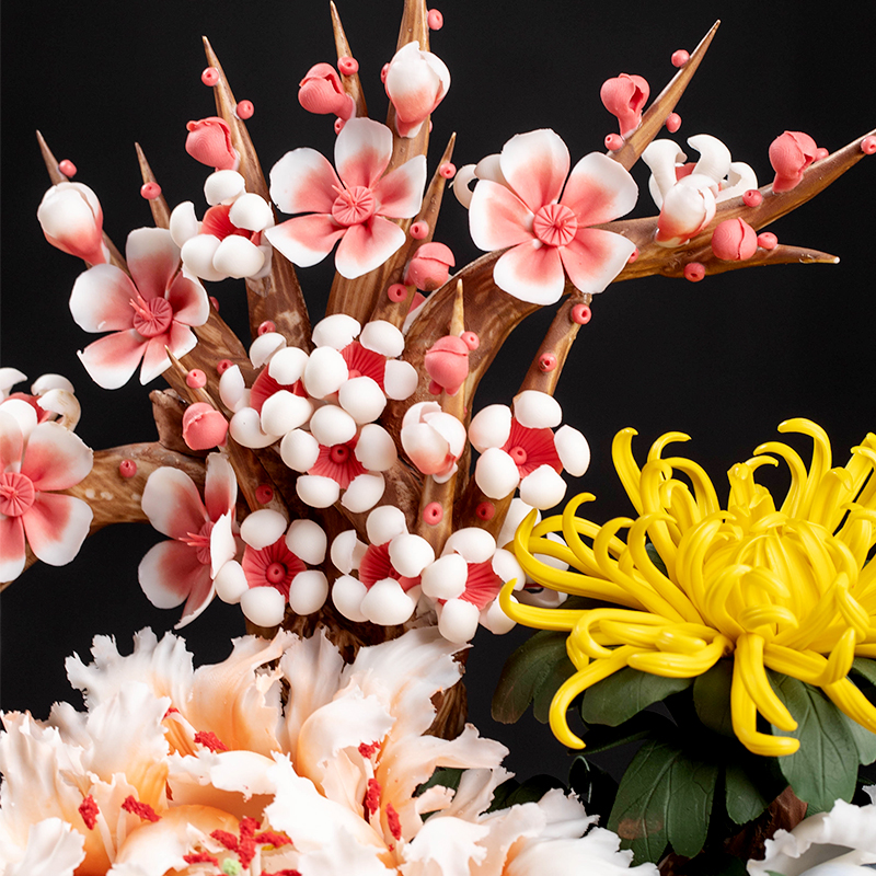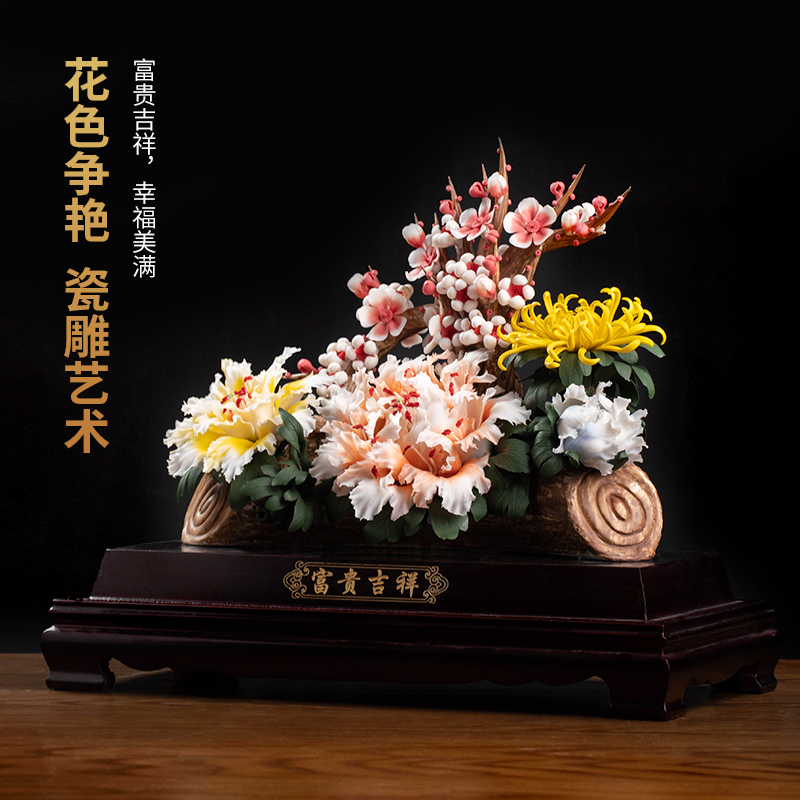 东方泥土《富贵吉祥》摆件陶瓷捏花工艺礼品摆饰开业礼品乔迁新居
