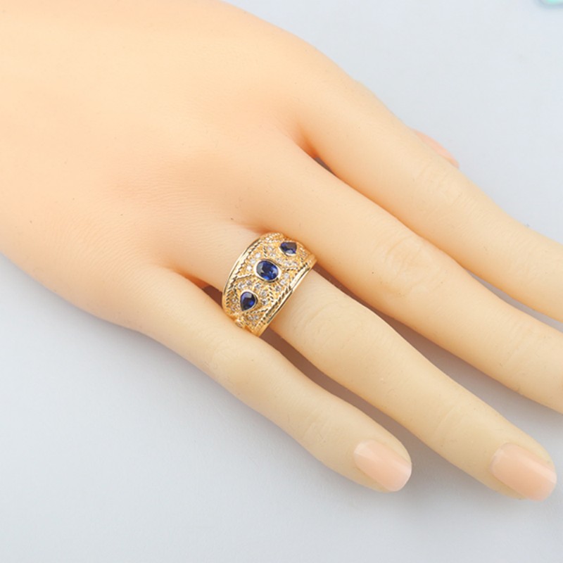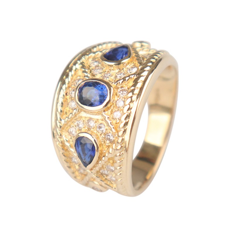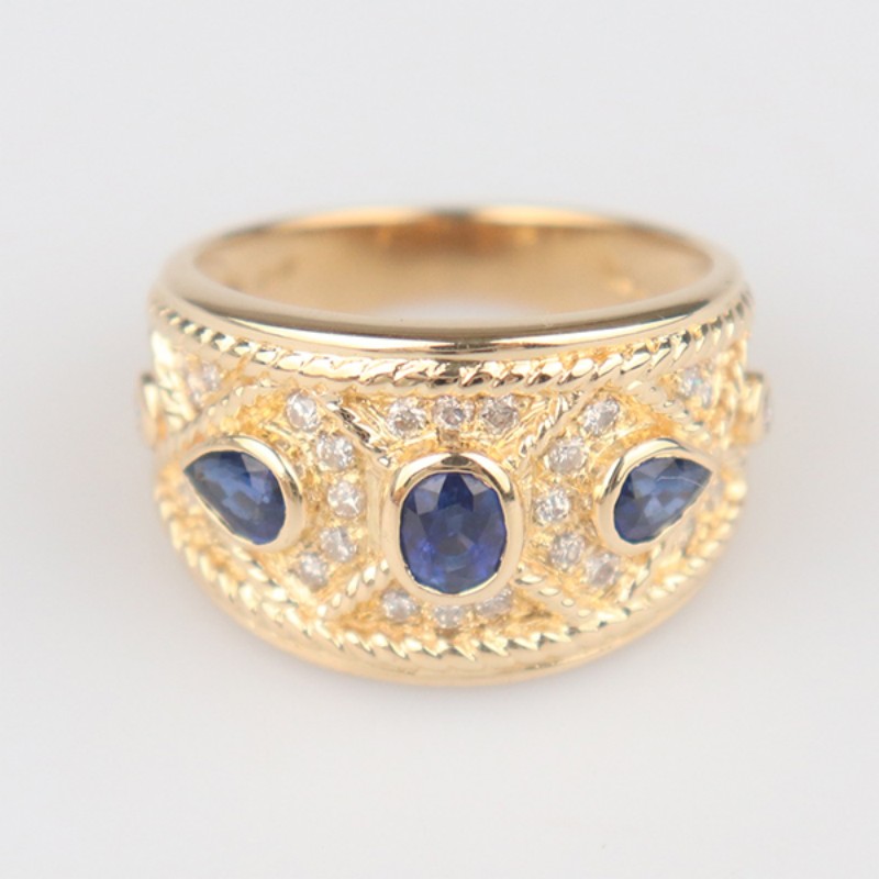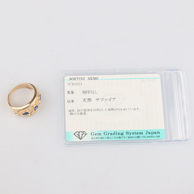 【自营】中古95新日本进口古典三颗蓝宝石群镶钻石戒指黄金53号