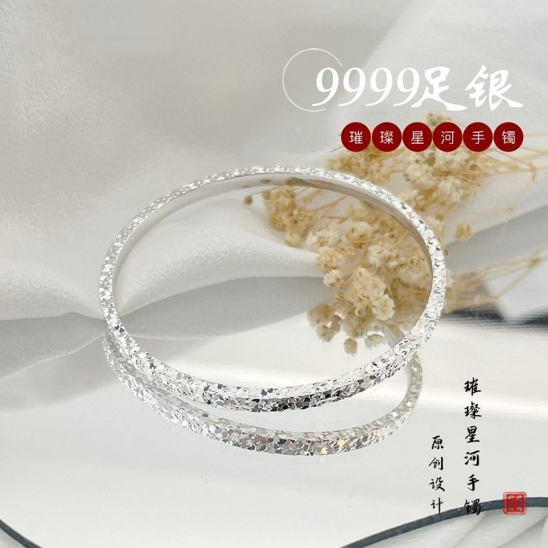 足银9999碎碎冰银手镯闭口实心2024新款爆闪碎冰冰碎银子纯银镯子