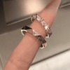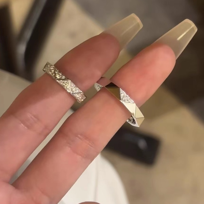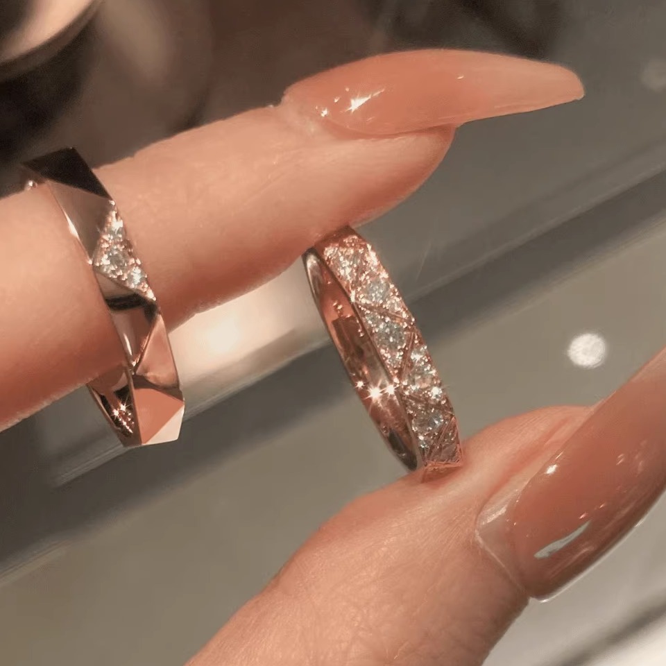 auQDE两件套!爆闪满钻玫瑰金色素圈光面戒指女款轻奢高级感叠戴