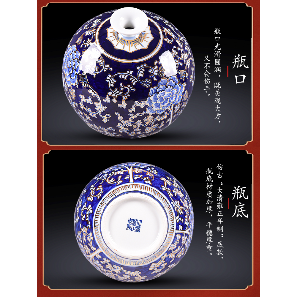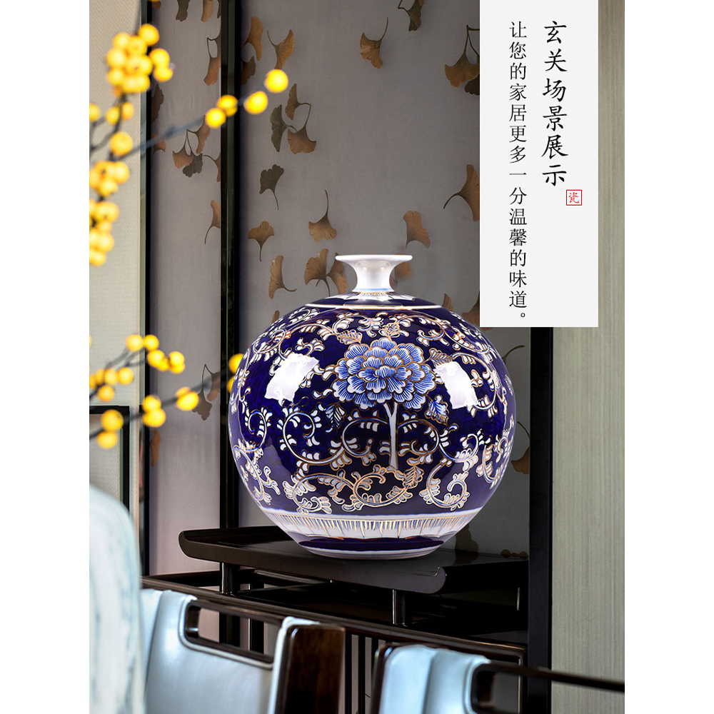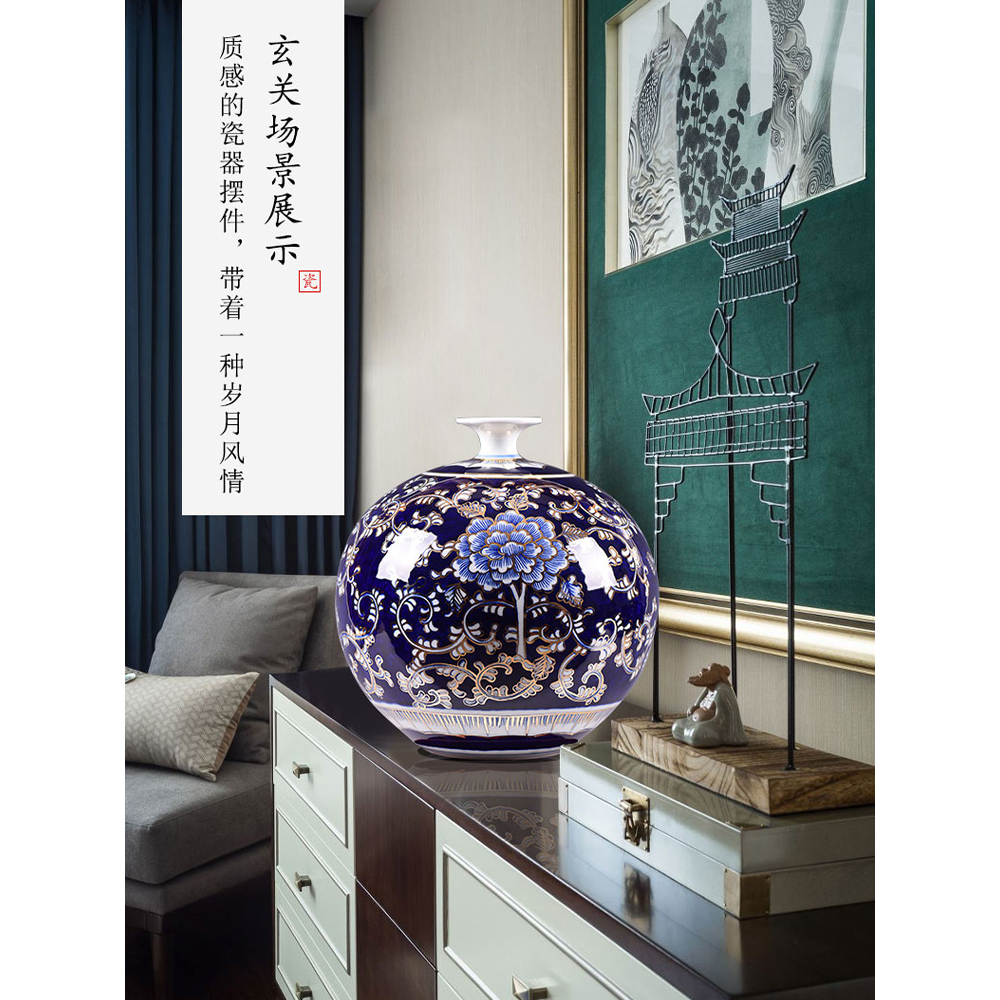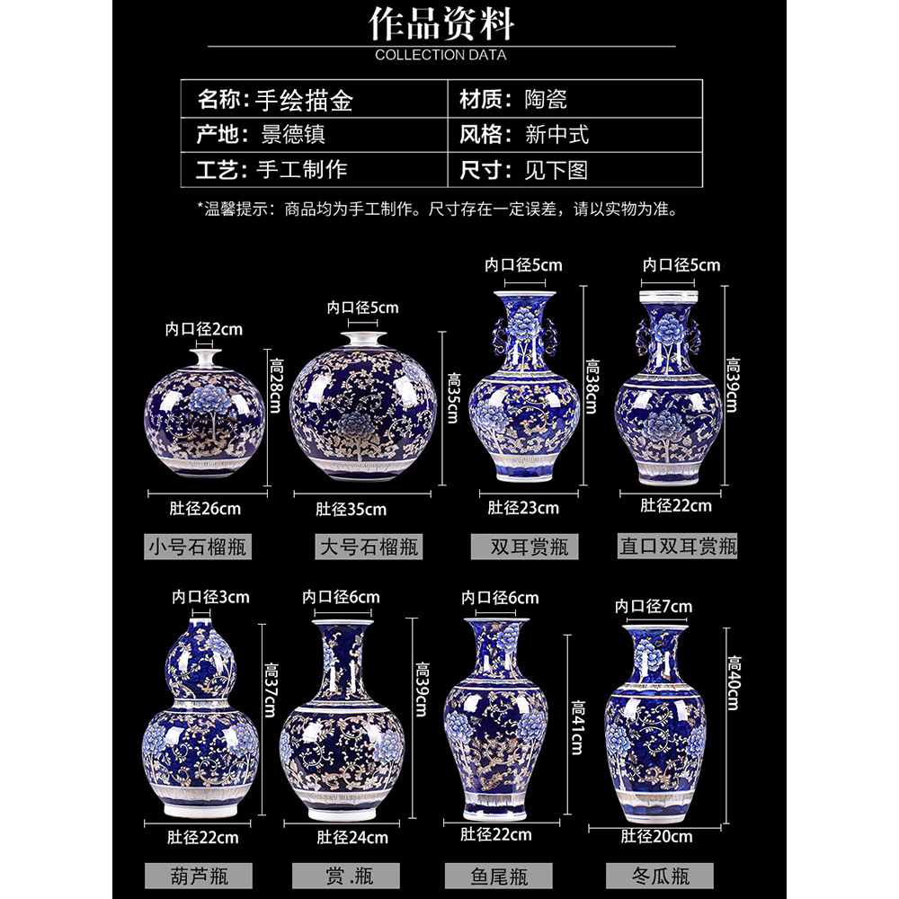 景德镇陶瓷器花瓶摆件大号手绘描金青花瓷玄关中式古典装饰品摆件