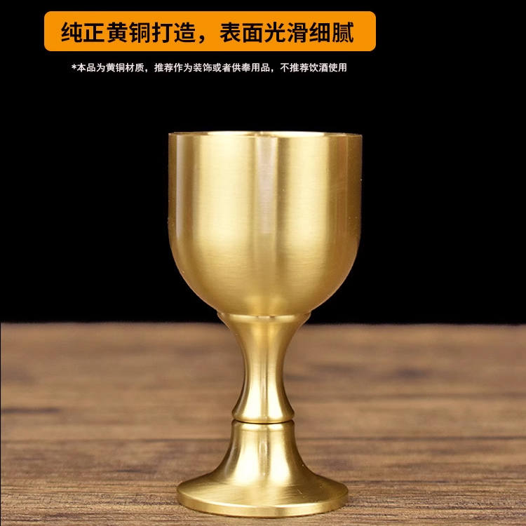 铜酒杯古代仿古高脚杯纯黄铜小酒杯上供奉财神爷杯子供佛水杯摆件