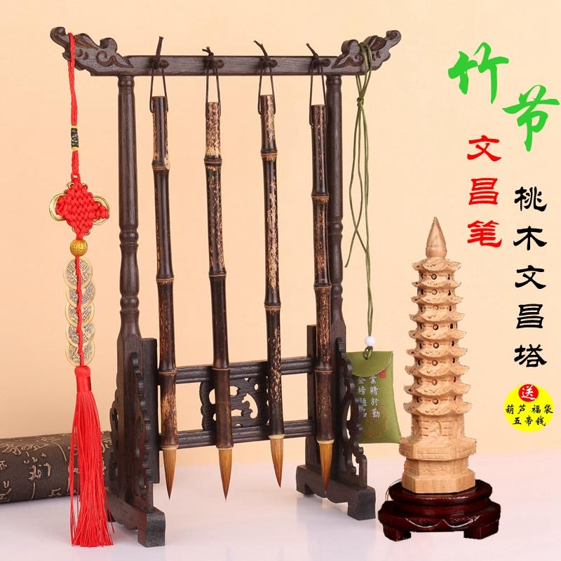 文昌毛笔4支+十三层文昌塔木质笔架学生书桌办公摆件刻诗人布局位