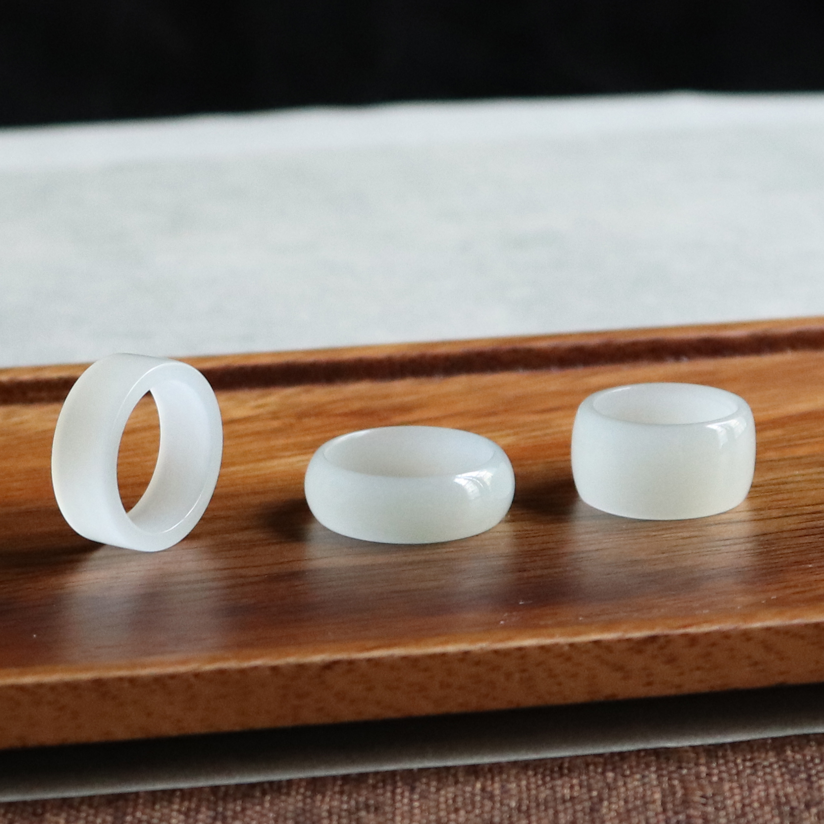 天然和田玉晴水直切戒指男女款素面高青白扳指玉石指环送证书
