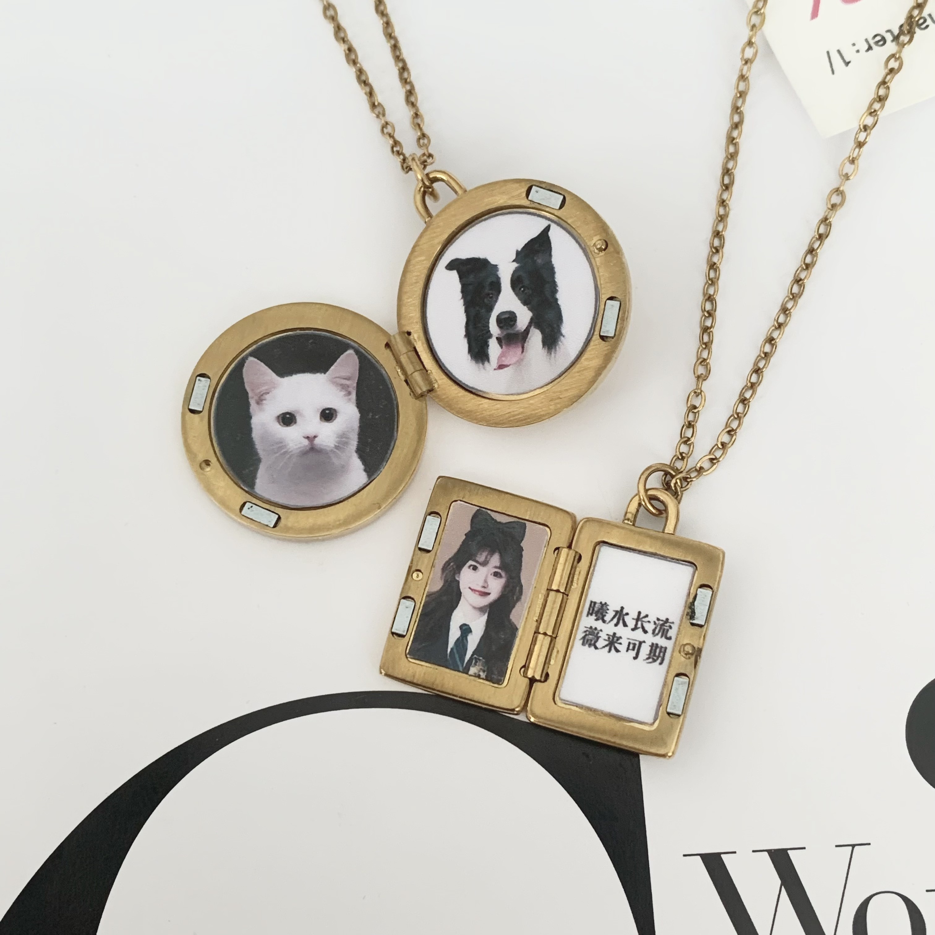Vögel「方圆」纪念亲人可定制相盒项链情侣礼物翻盖宠物照片吊坠