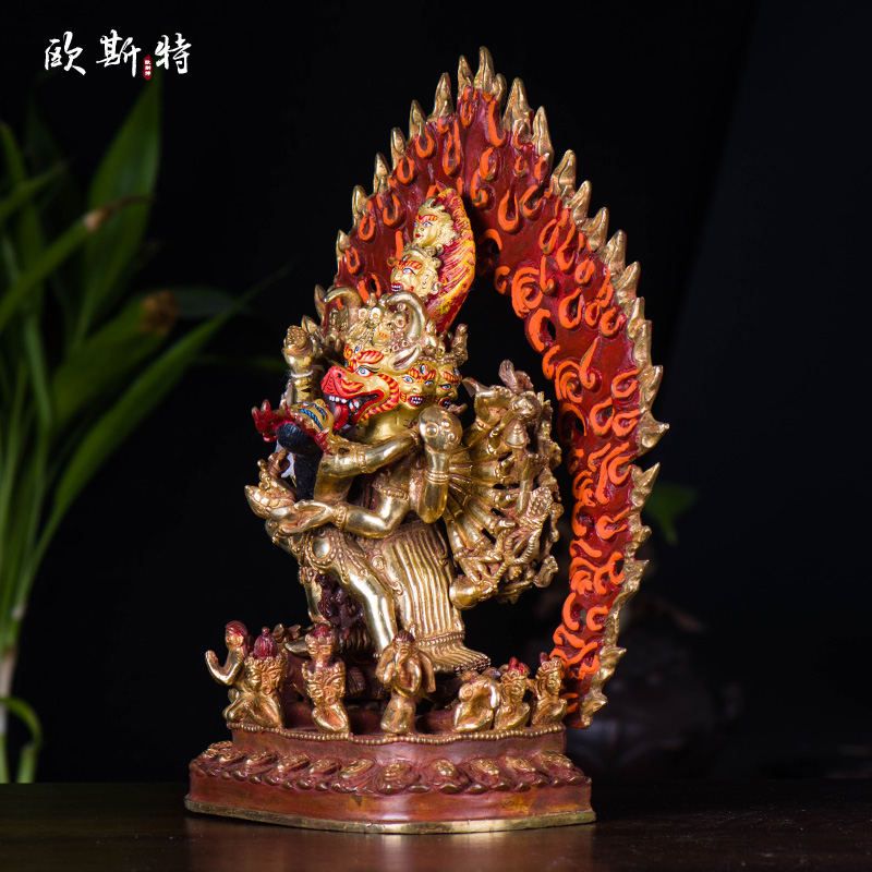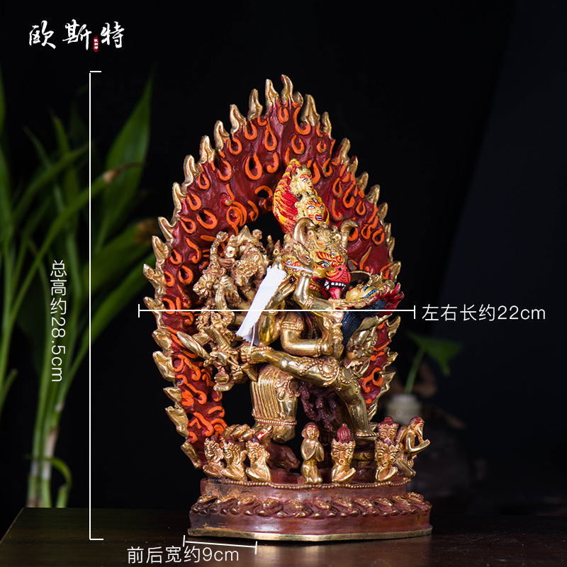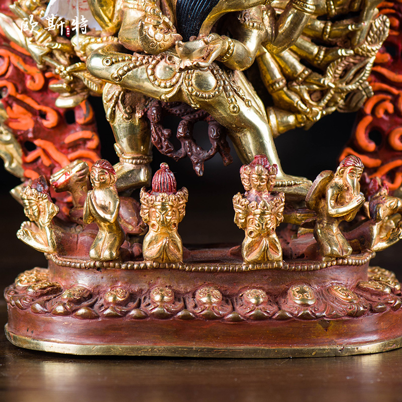 尼泊尔手工8寸铜半鎏金大威德金刚铜像 家居客厅玄关用品中式摆件
