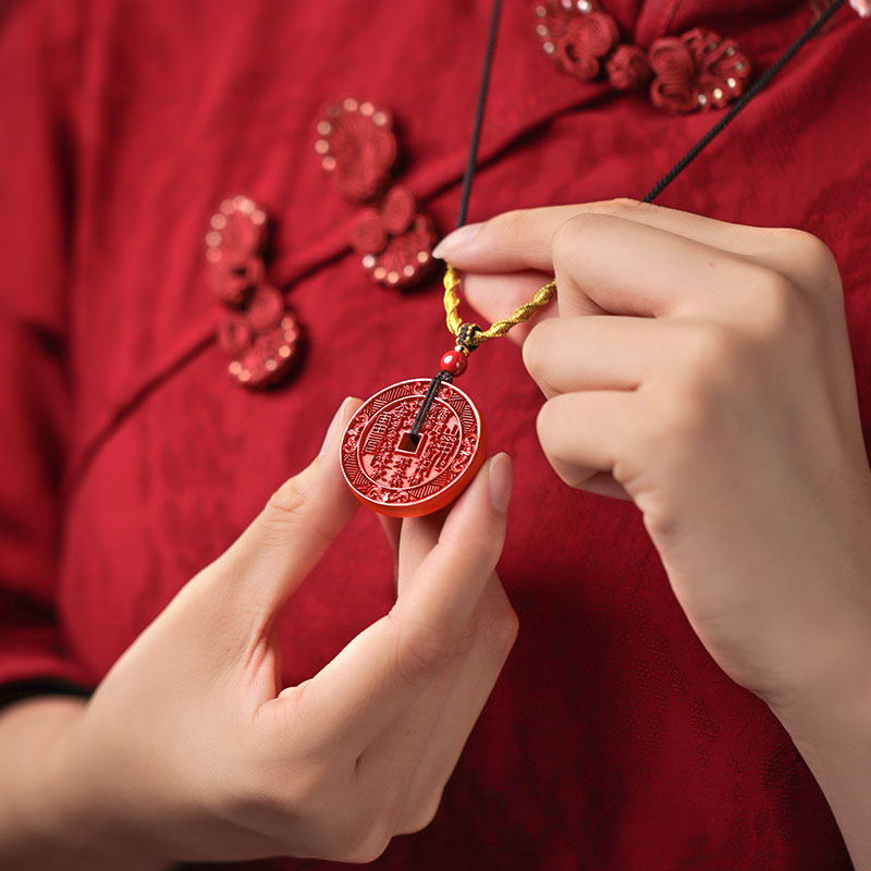吉照堂正品八卦牌朱砂山鬼花钱吊坠本命年平安挂件护身符项链饰品