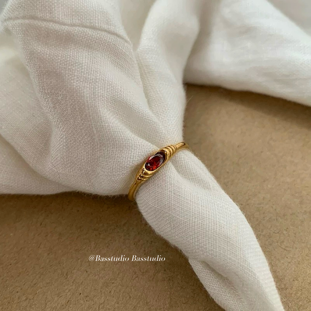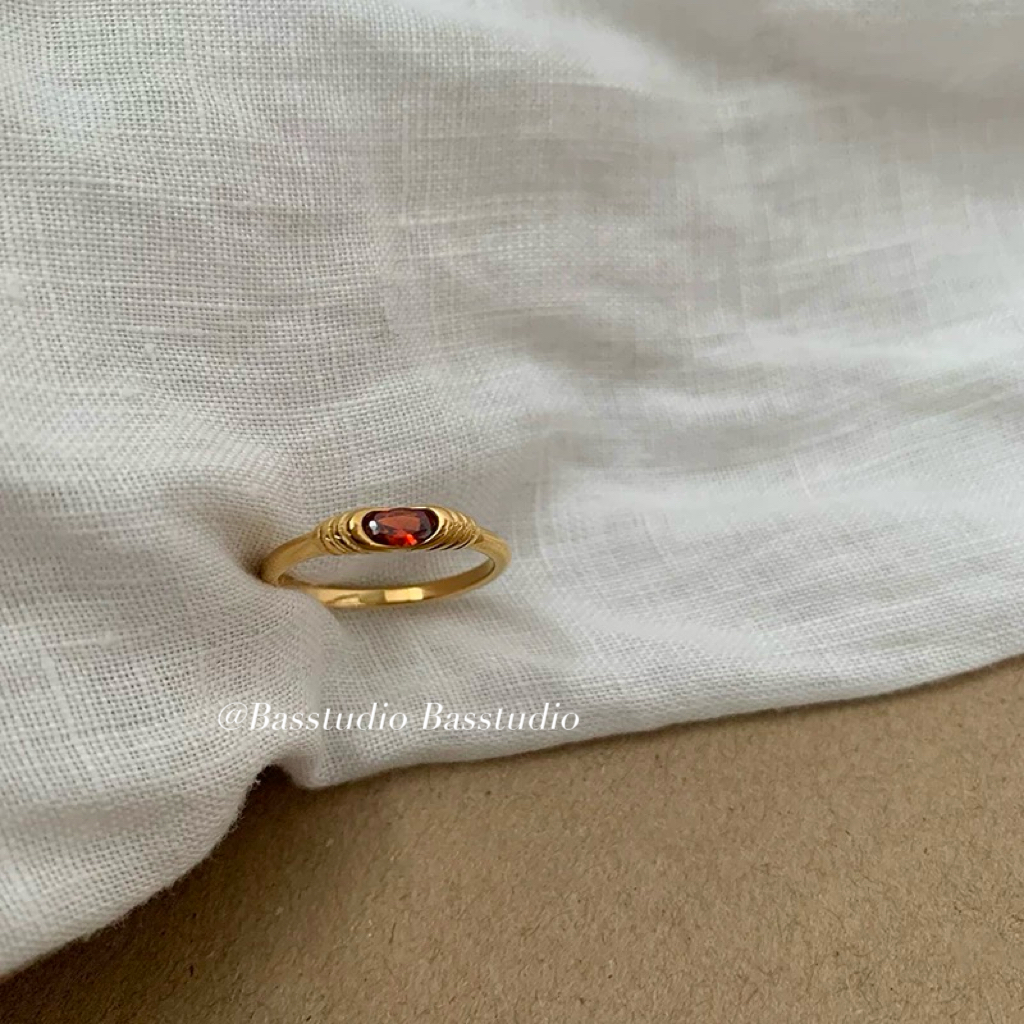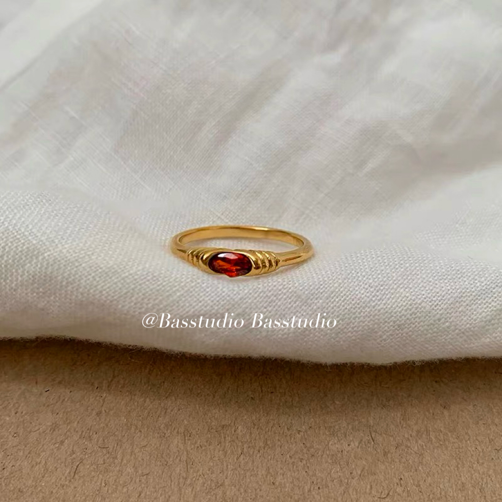 Basstudio 不掉色法式复古宫廷风高级红色锆石时尚贵气钛钢镀金色