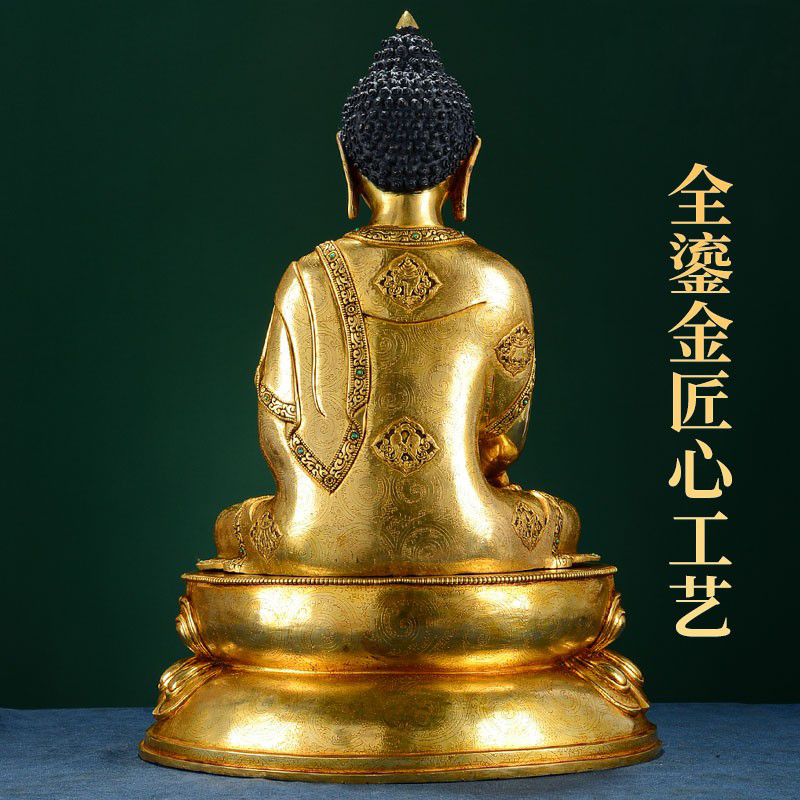 尼泊尔进口手工释迦牟尼居家桌面鎏金释迦摩尼铜像摆件15寸
