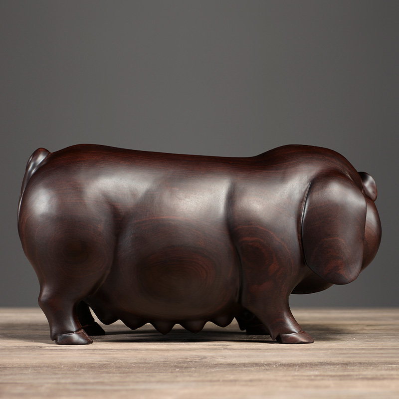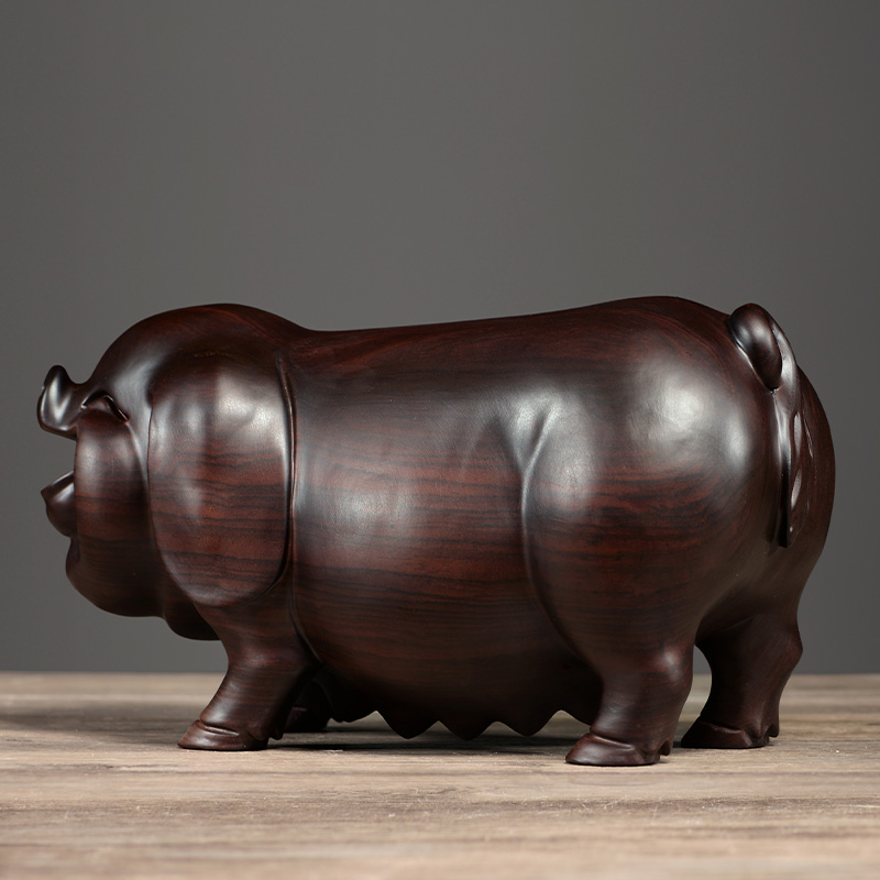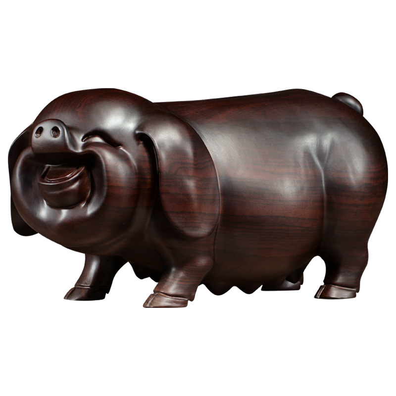 黑檀木雕猪摆件实木动物家居装饰创意可爱十二生肖木猪红木工艺品