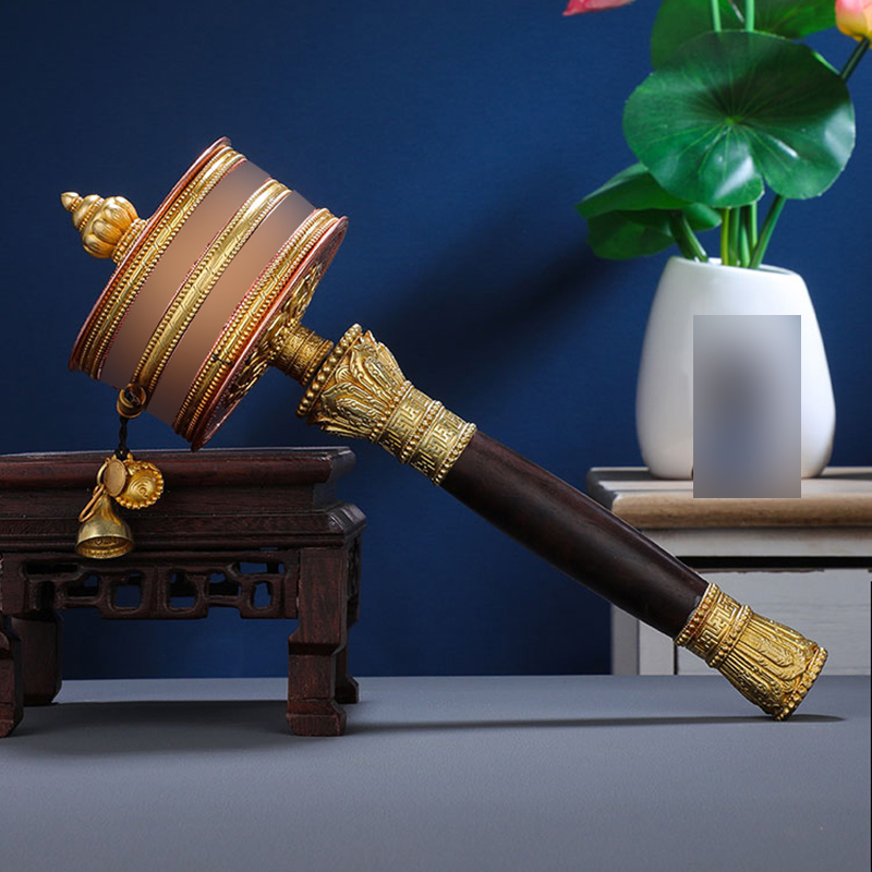 现货速发手摇转动摆件 西藏用品纯铜家用八吉祥压制浮雕家用摆件