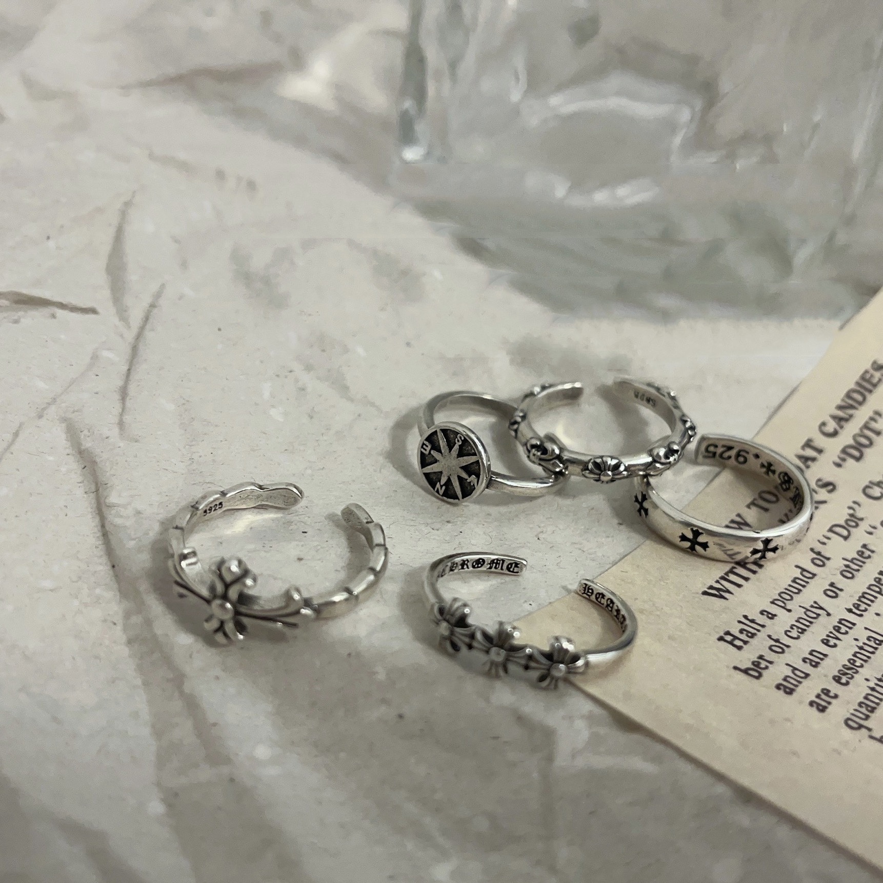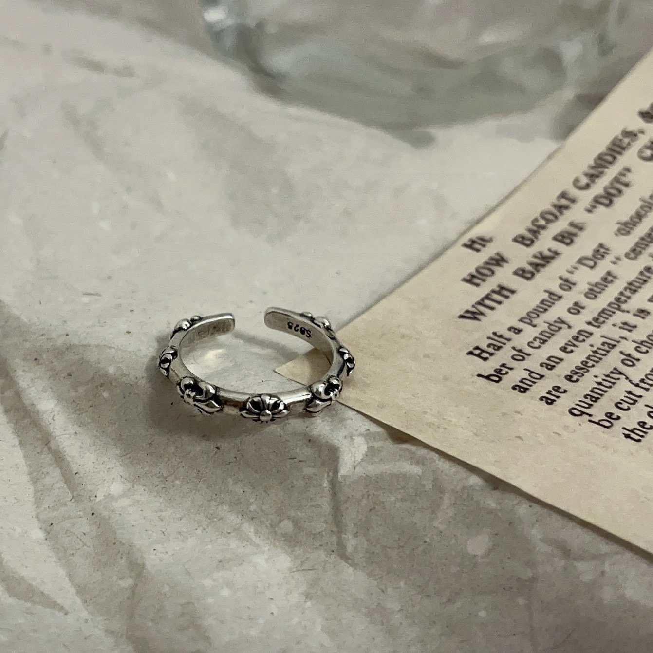 暗黑做旧十字架开口戒指欧美风小众设计指环简约开口可调节食指戒