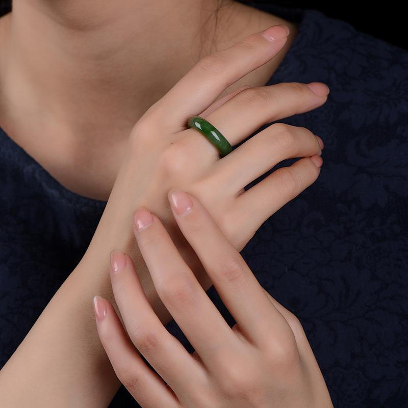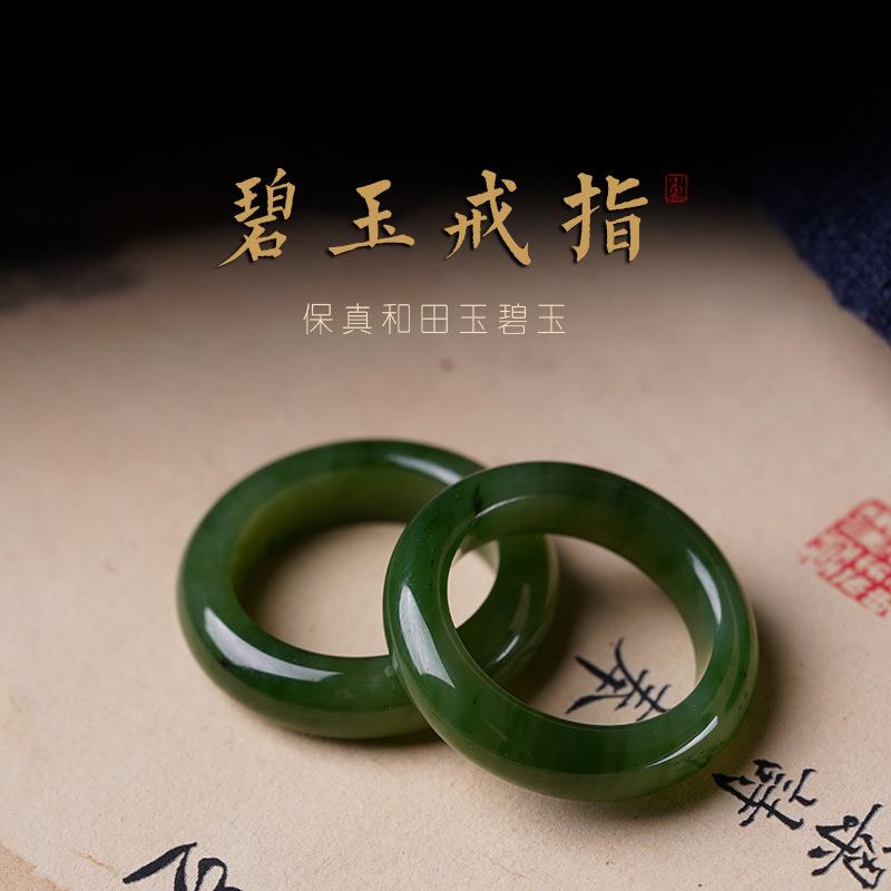 2025天然和田玉碧玉戒指男女小众设计素圈绿色玉石指环时尚食指尾