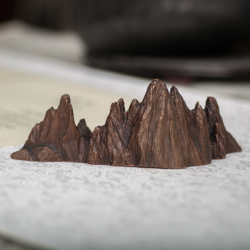 铜山摆件书房办公室毛笔架镇纸中式假山子案头文房清供送长辈礼物