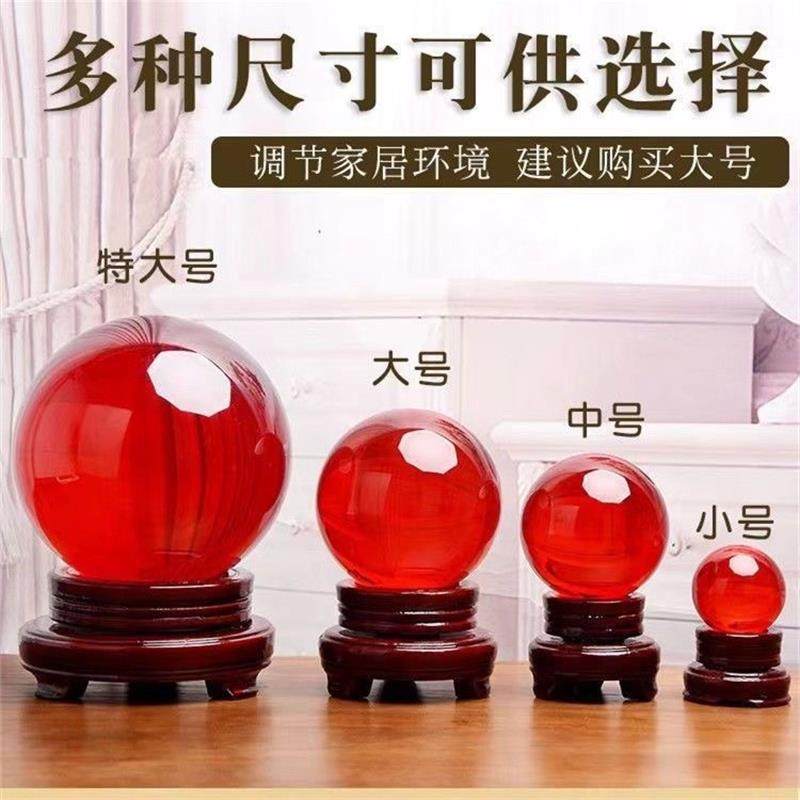 鸿运当头红色水晶球镇宅招财摆件家居开业红色转运客厅办公室