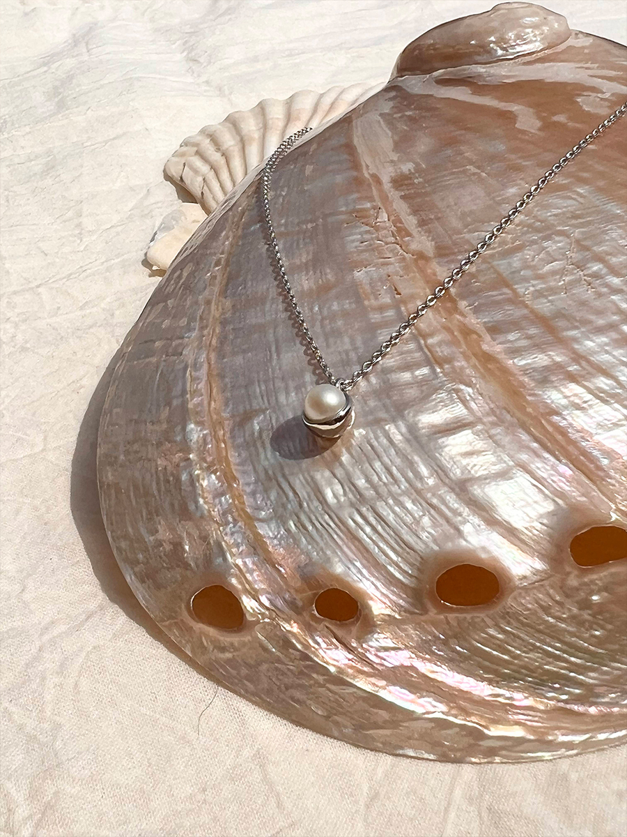 PAUSA ANN s925 小众设计榛果天然光泽感珍珠半包裹项链