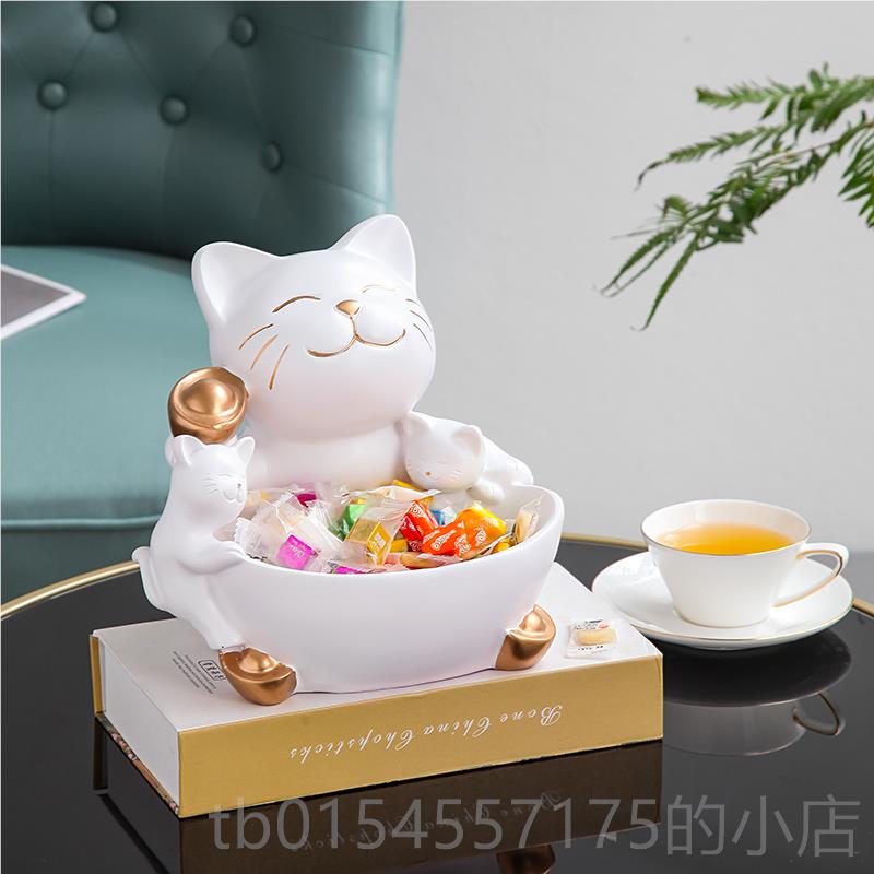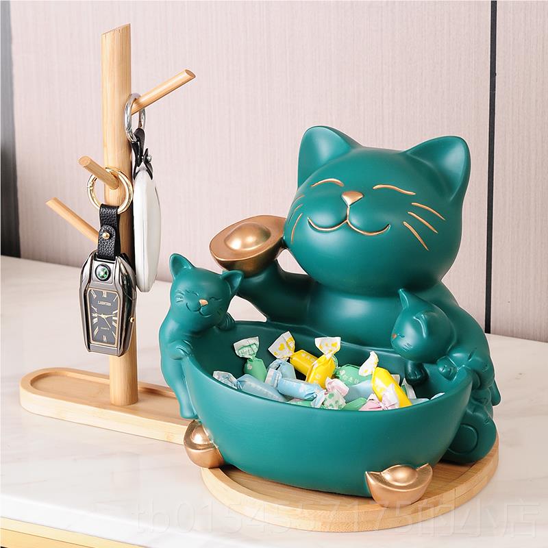 正品招财猫摆开件玄关鞋柜钥匙纳盘柜装饰收家居饰品现酒代简约业
