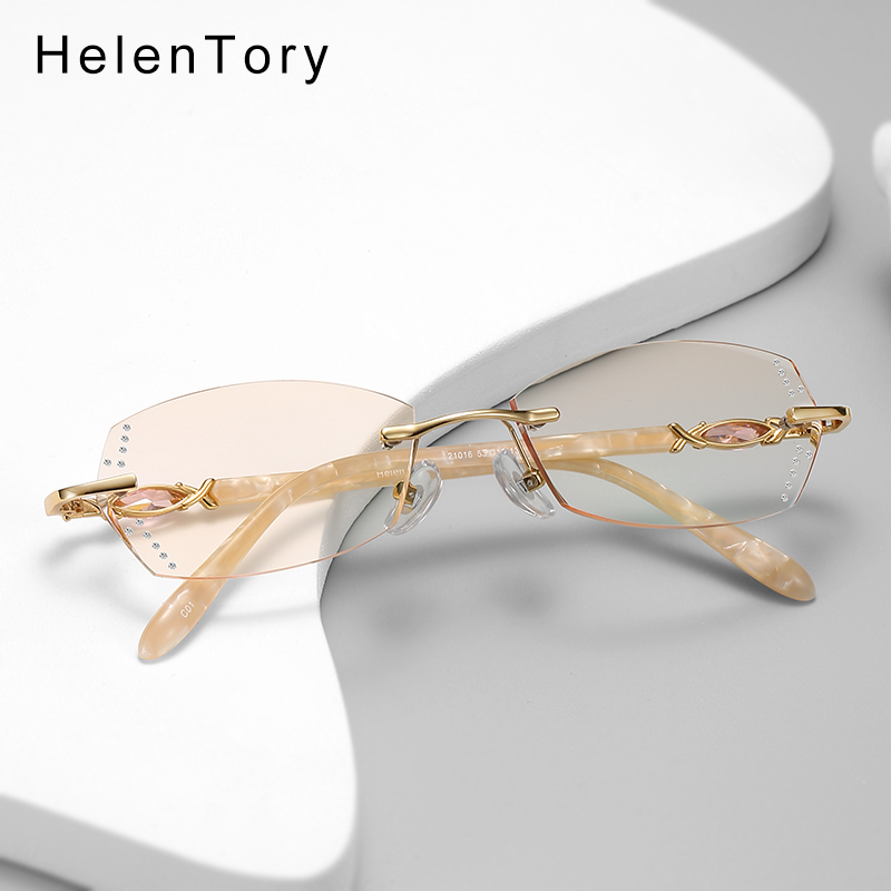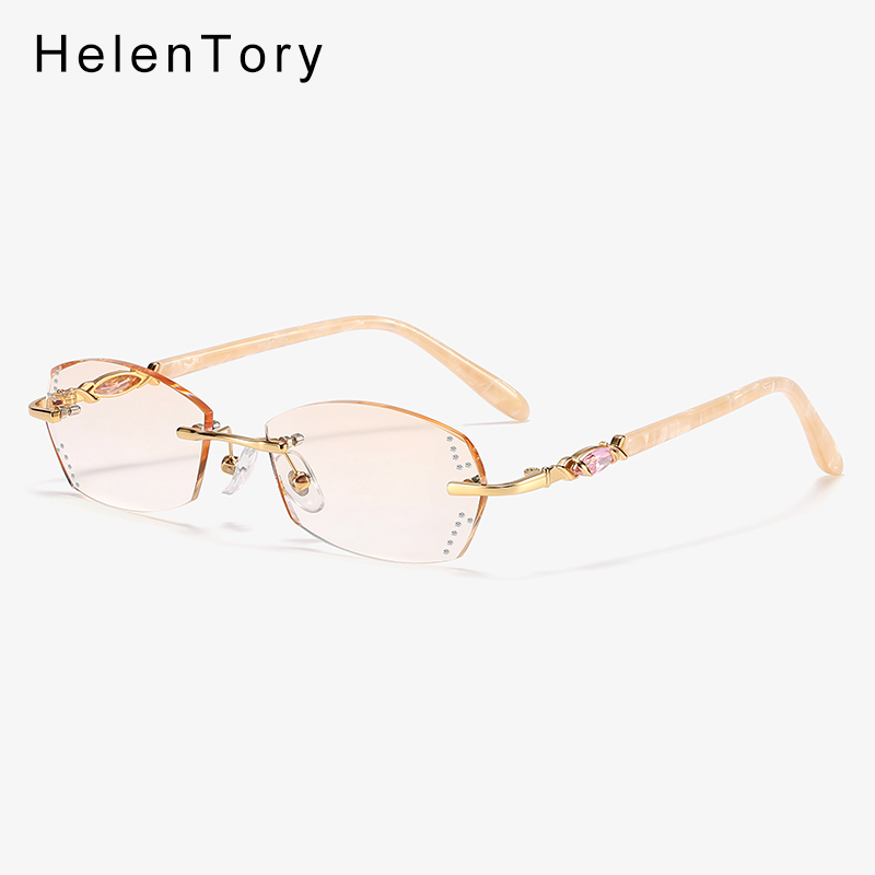 钻石切边无框眼镜近视女网上可配有度数散光防蓝光无边框超轻板材