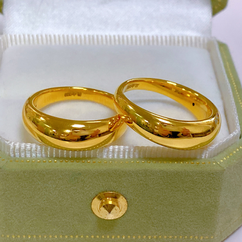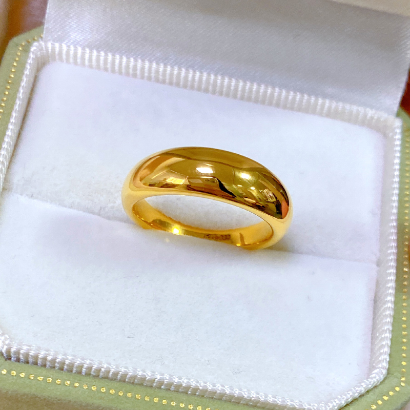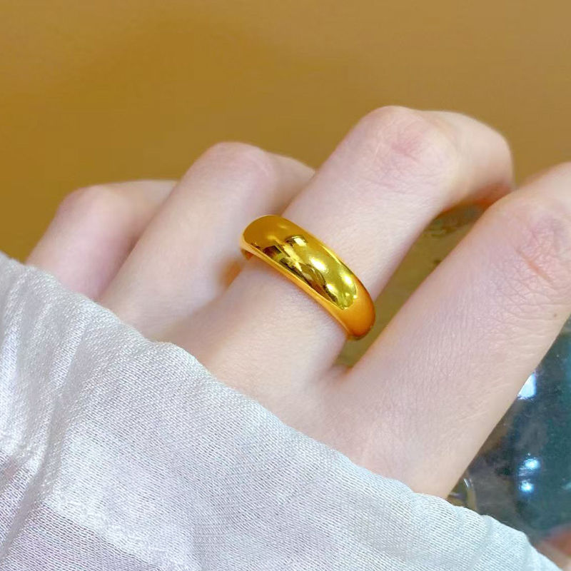 5D硬金黄金小金沱戒指女999足金光面素圈新款食指戒纯金指环送礼