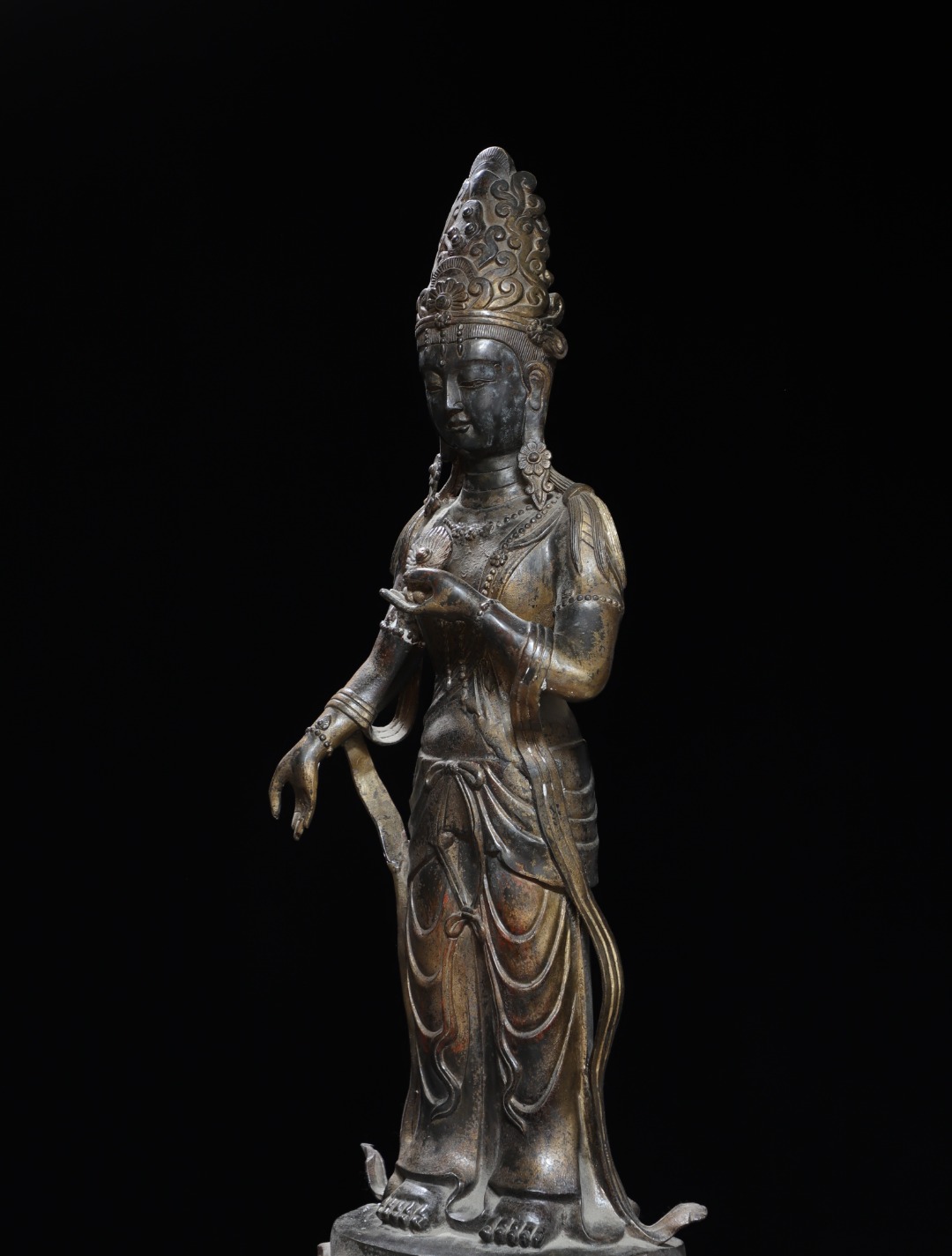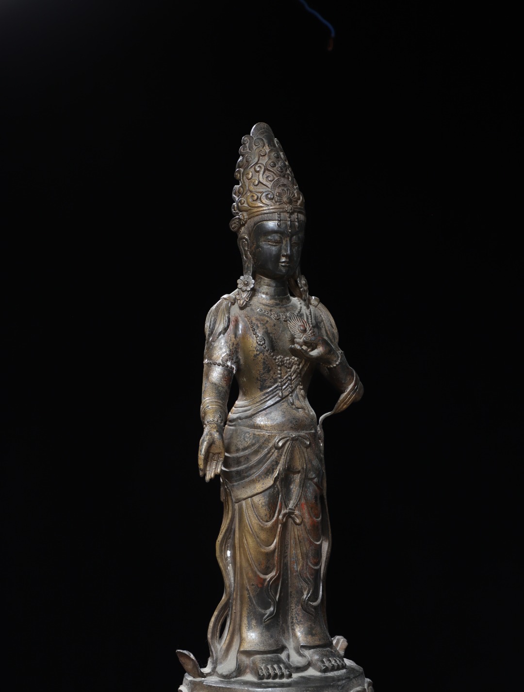 纯铜释迦牟尼站度母复古铜器泥金佛像家居佛堂供佛桌面装饰品摆件