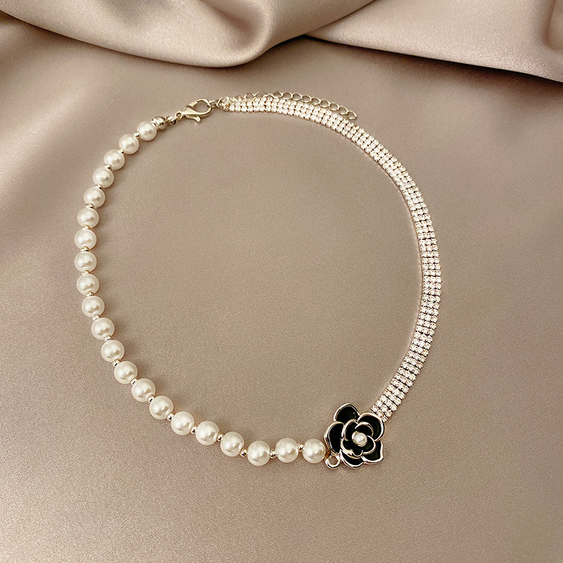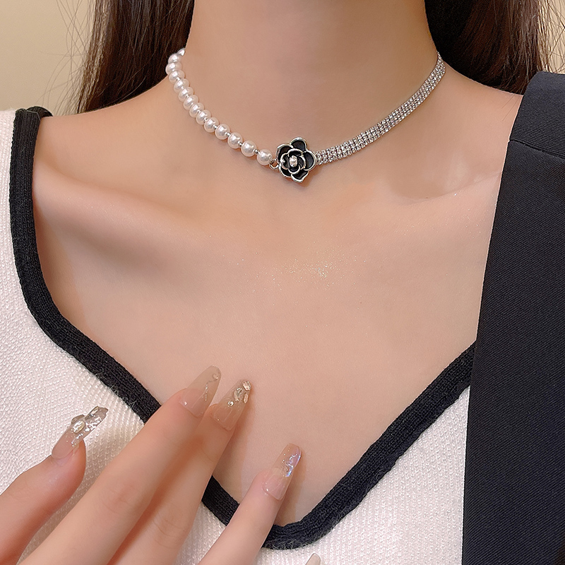 山茶花珍珠项链女夏法式轻奢高级感锁骨链2023年新款潮冷淡风颈链