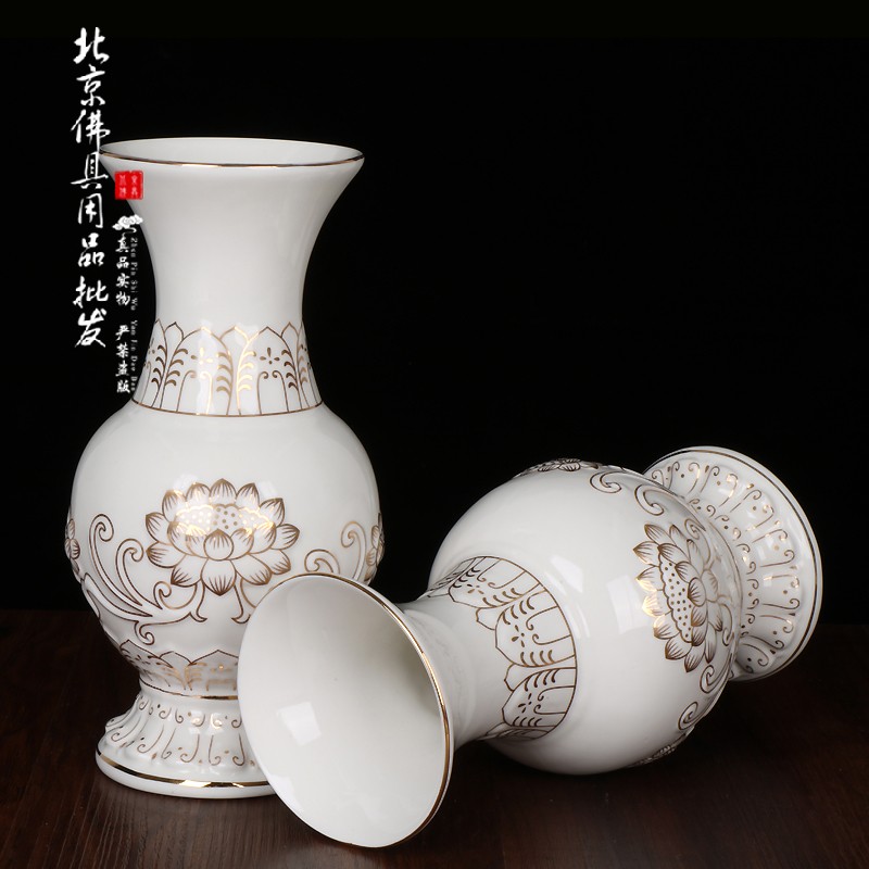 北京佛具用品浮雕白色莲花瓶 观音甘露瓶 家用供佛花瓶净水花瓶