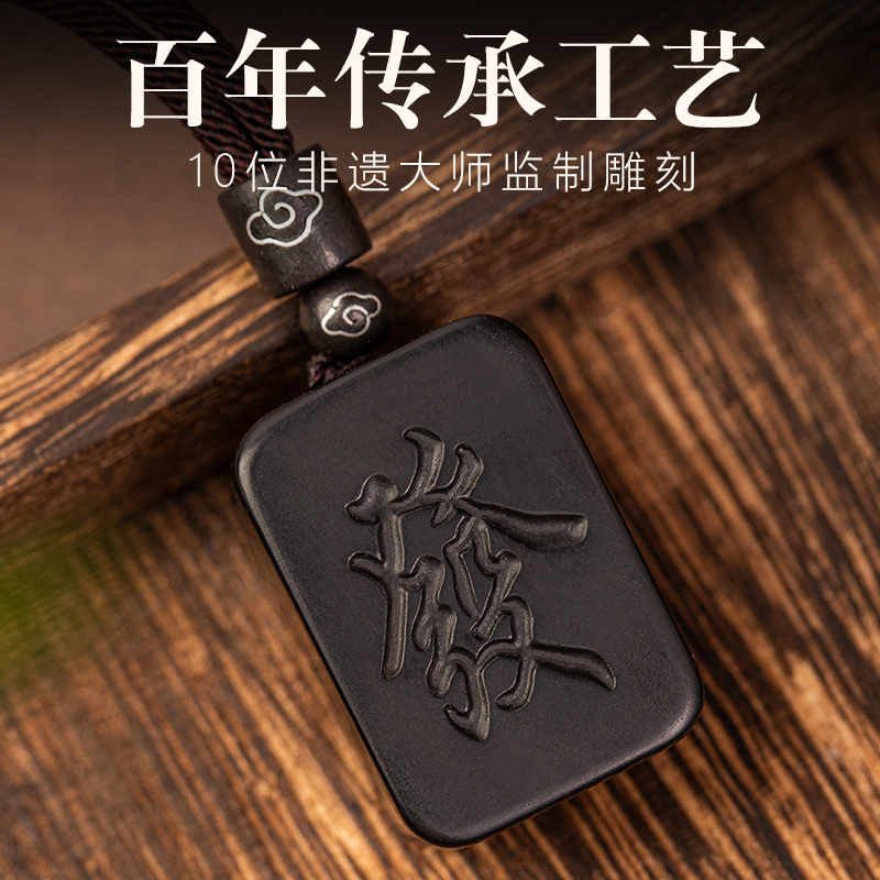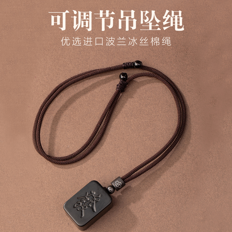 正品和田玉墨玉平安无事牌吊坠男女项链挂坠玉佩玉坠发字牌玉牌