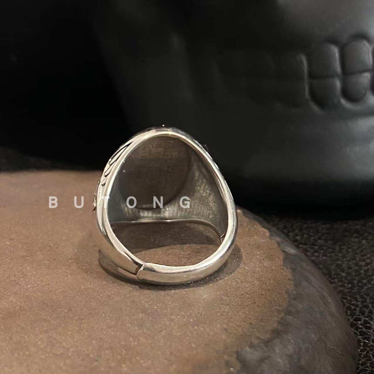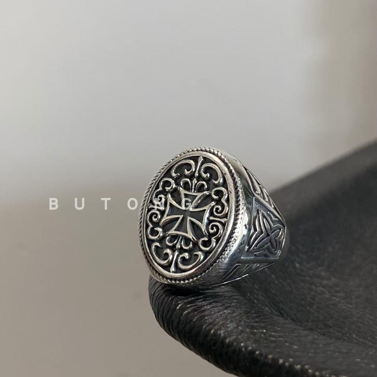 不同银匠 欧美925纯银十字架花纹开口戒指男女复古霸气潮流食指戒