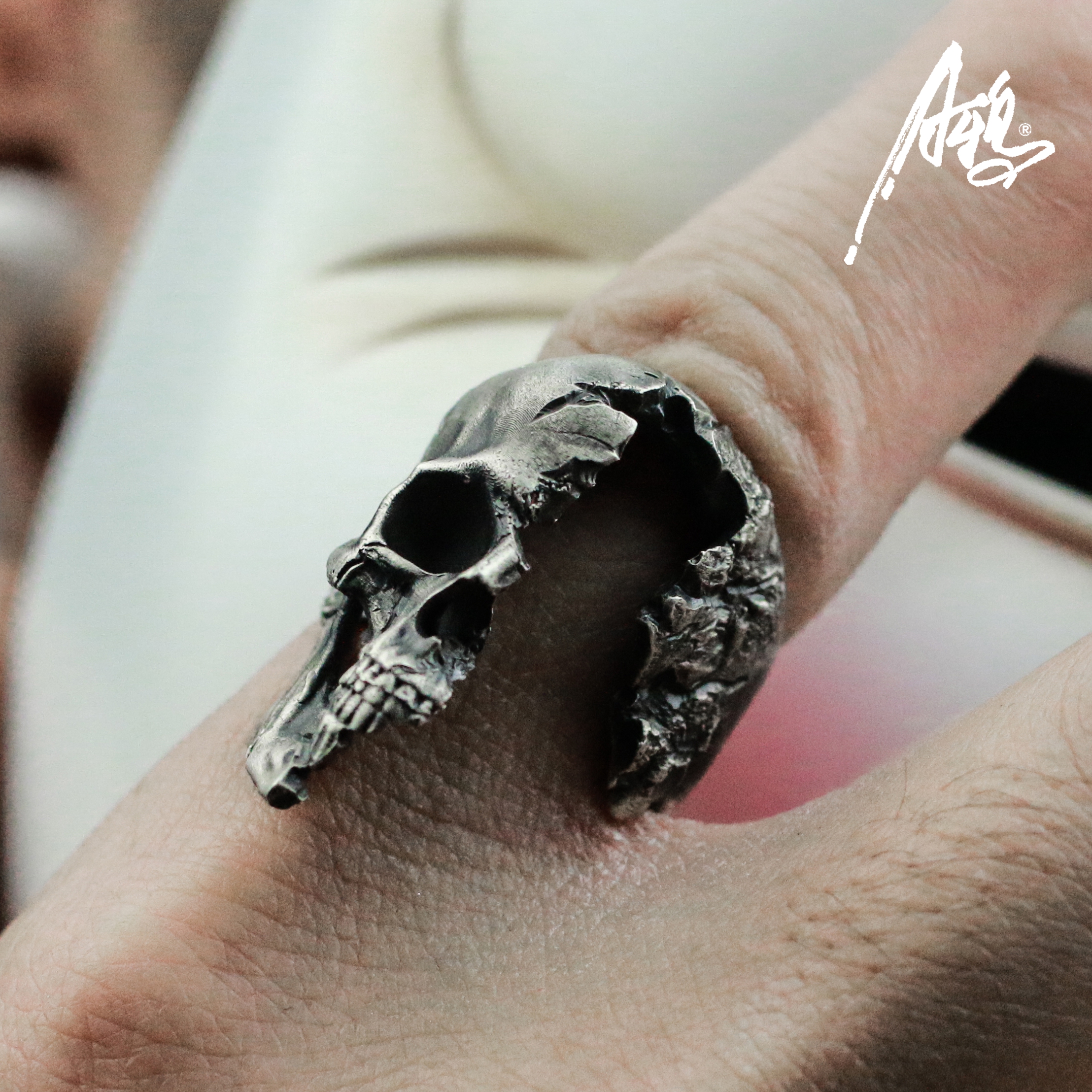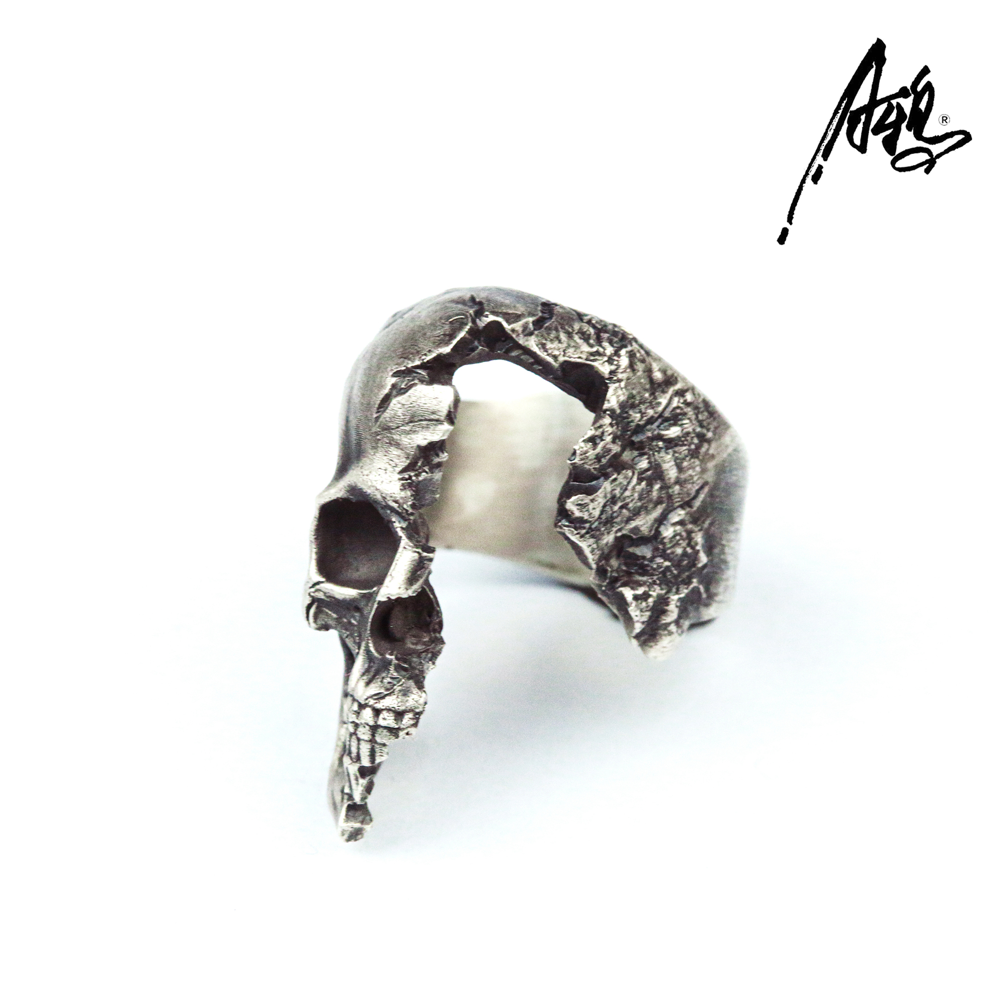 A鸦原创手工设计个性定制925银戒指骷髅半面浮雕设计裂地纹理哥特
