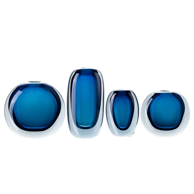 热销钻石星厚重深蓝色水晶玻璃现代简约单透明支花插花器软装饰摆
