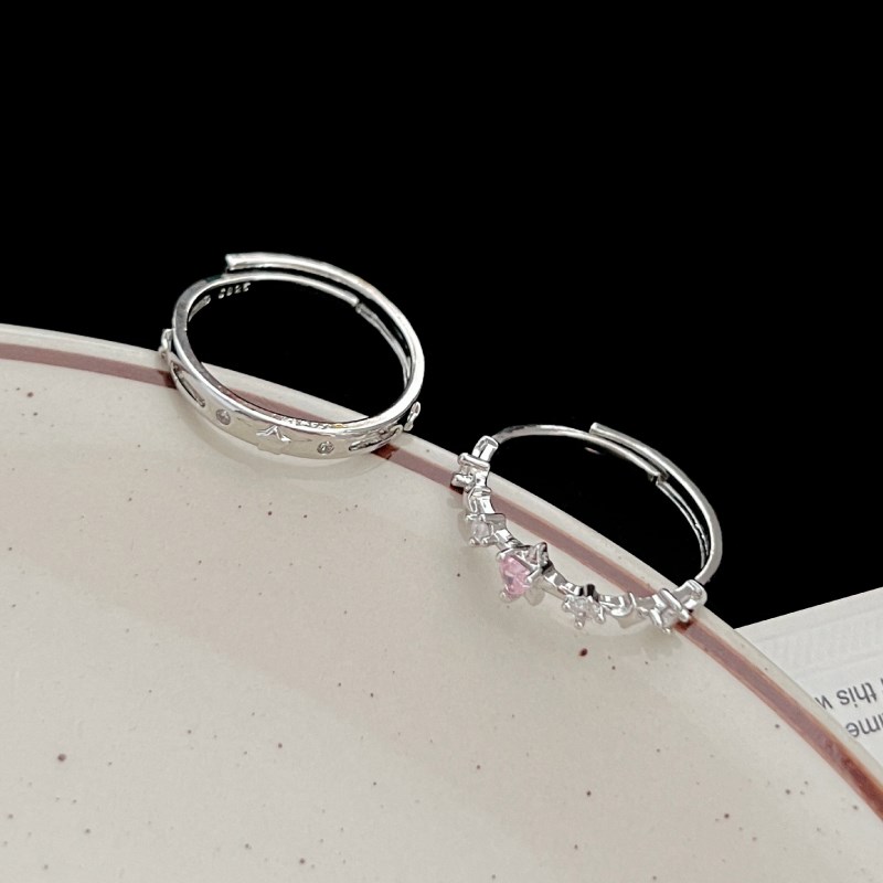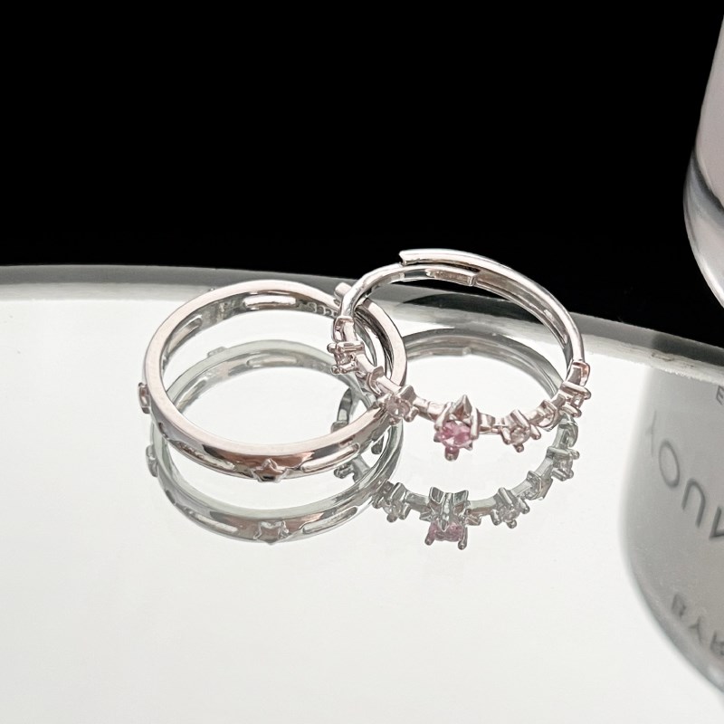 KANSAI粉色星星两件套u情侣款戒指男女精致对戒食指戒可调节手饰